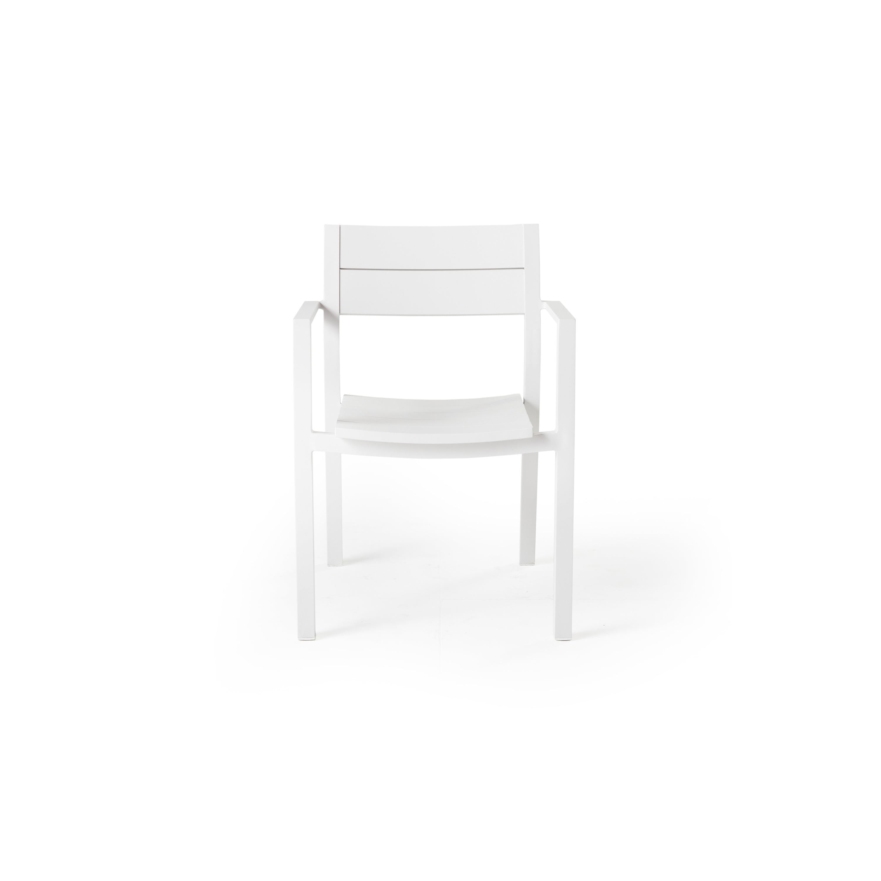 The Belvedere collection combines expertly crafted aluminum with durable finishes to set the stage for years of sunset cocktails and sun-drenched Saturdays to come. With a slightly scooped seat and flared back that enhances comfort, the Belvedere Dining Chairs in White have a stackable design for compact storage.
