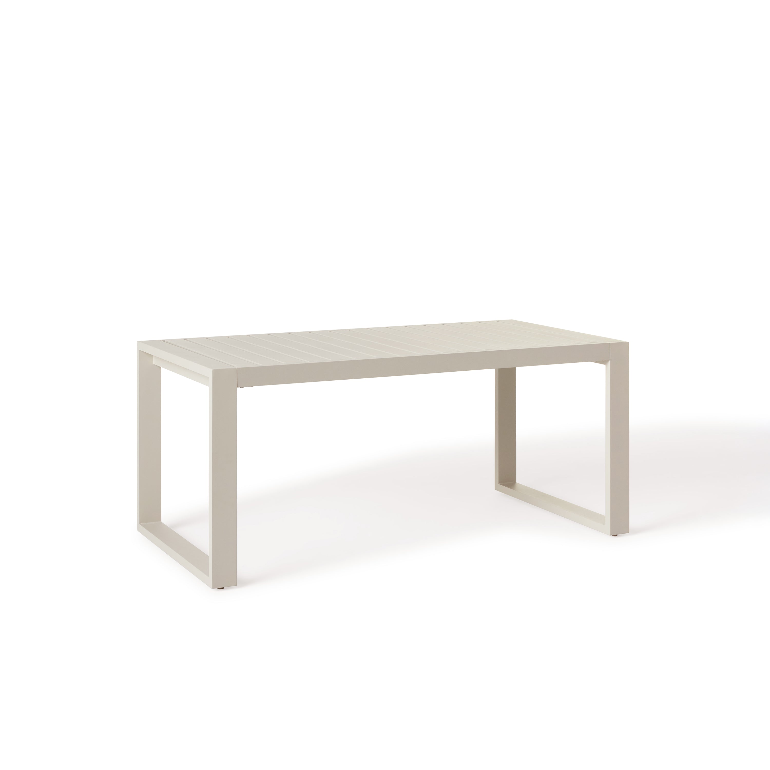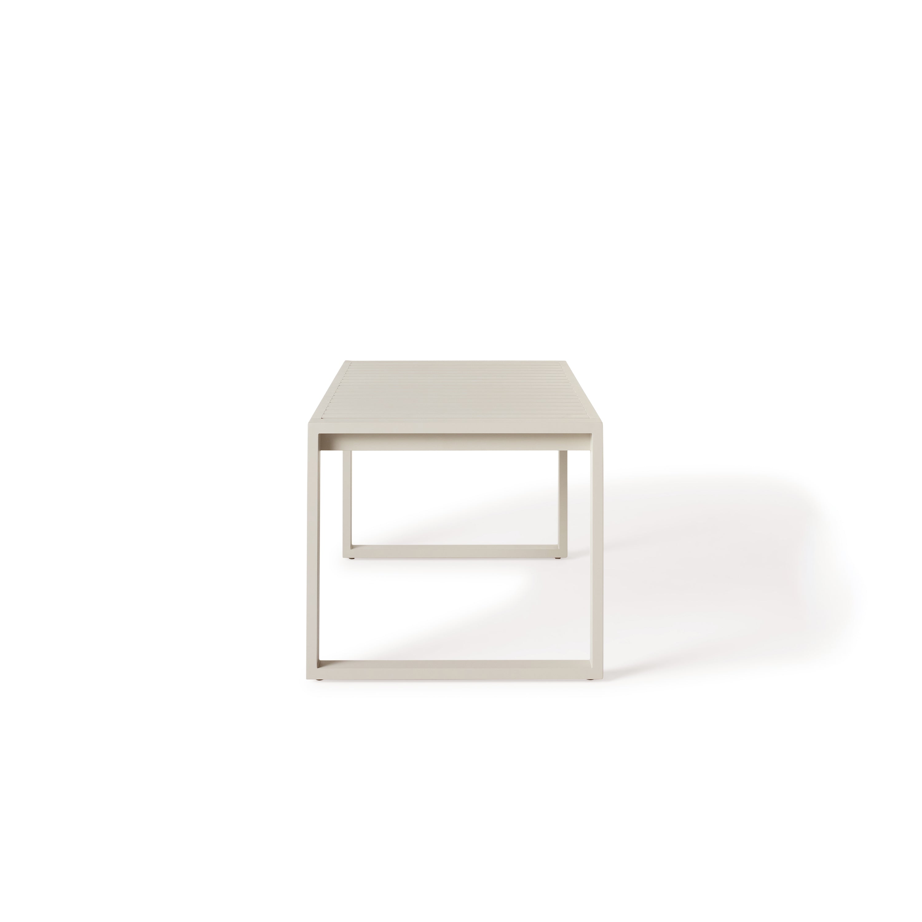 Architectural lines with a crisp, modern feel. Featuring an intermediate height that makes it the perfect complement to our lounge furniture, this aluminum table creates an inviting gathering spot with a casual vibe. Use it to enjoy cocktails, dinner and games from a whole new vantage point.