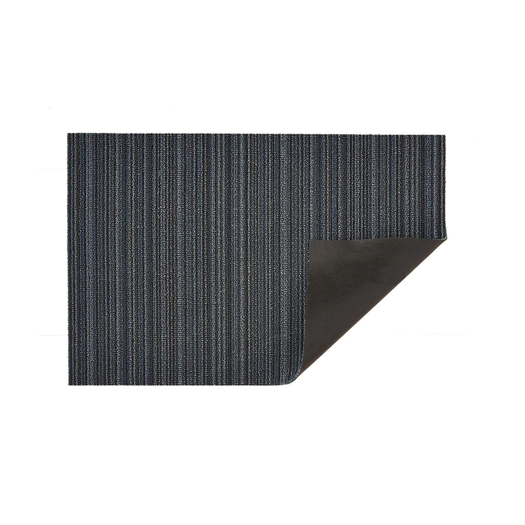 The Skinny Stripe Shag indoor/outdoor mat is made by tufting custom extruded yarns as loops onto a primary backing and then binding them onto a hardworking vinyl that could weather any storm outdoors and provides functionality underfoot indoors.