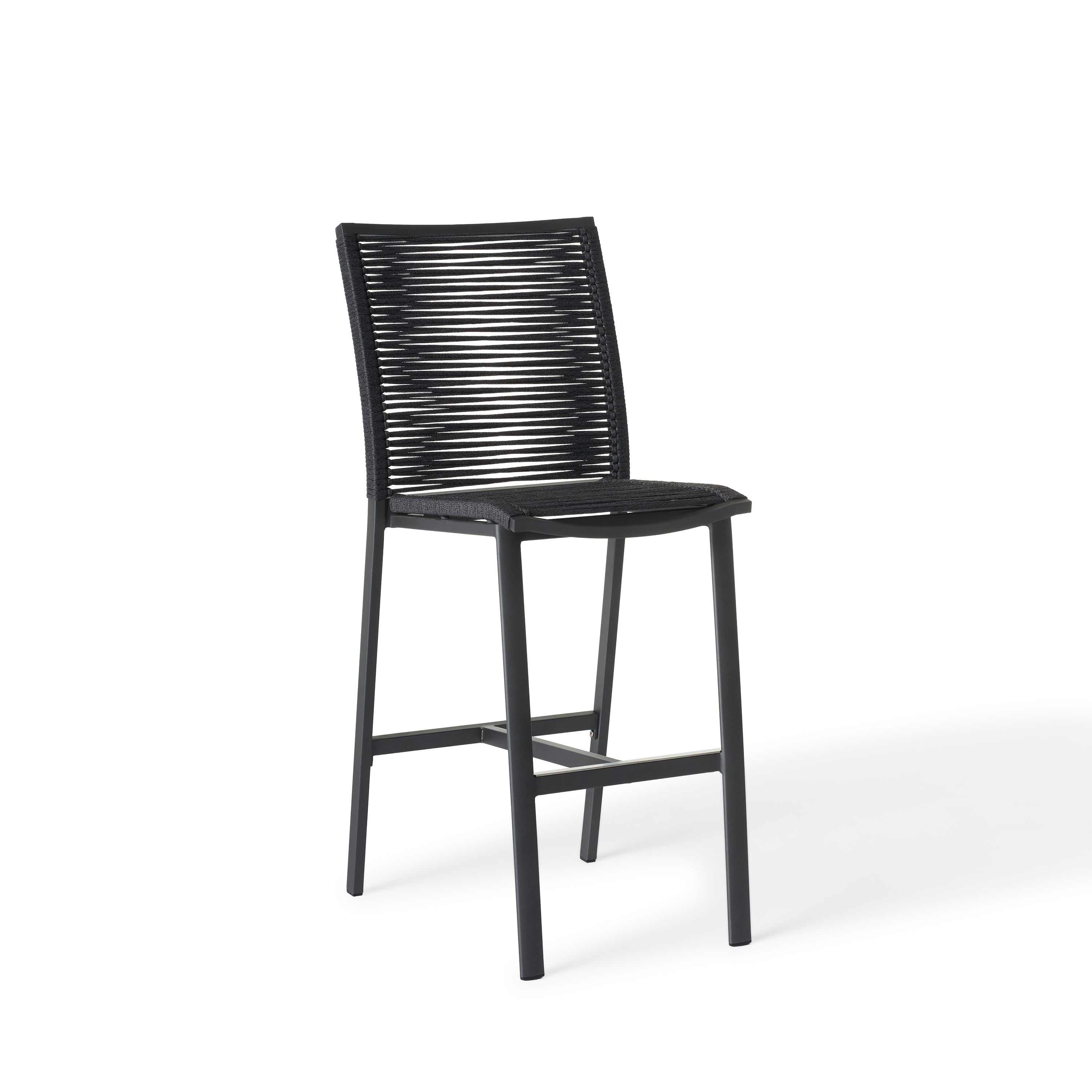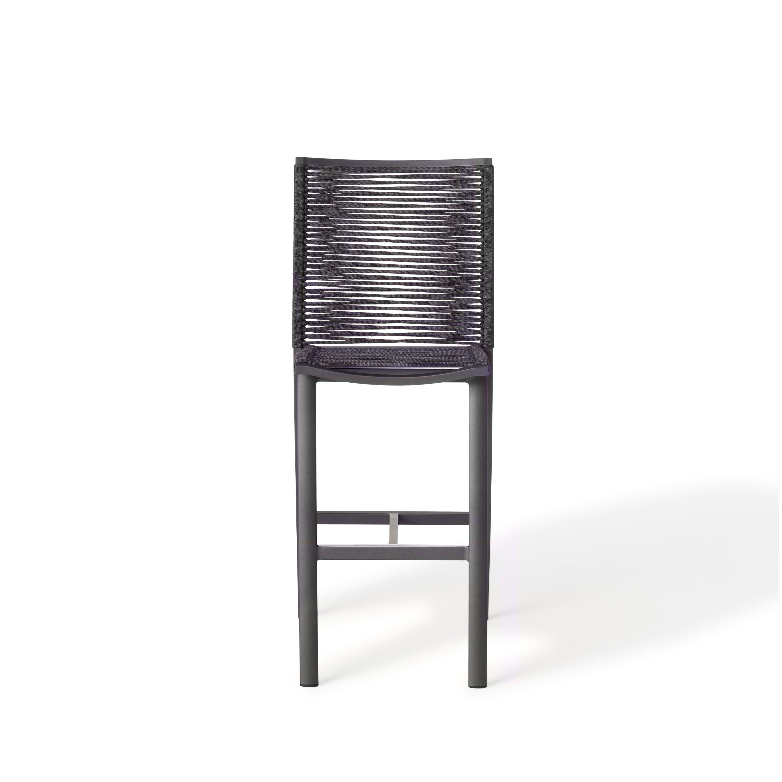 Clean lines engineered for ergonomics. Built to weather the elements with style. The Diablo Bar Side Chair pairs sculpted, charcoal aluminum frames with flat-woven Italian rope that cradles the body in comfort.