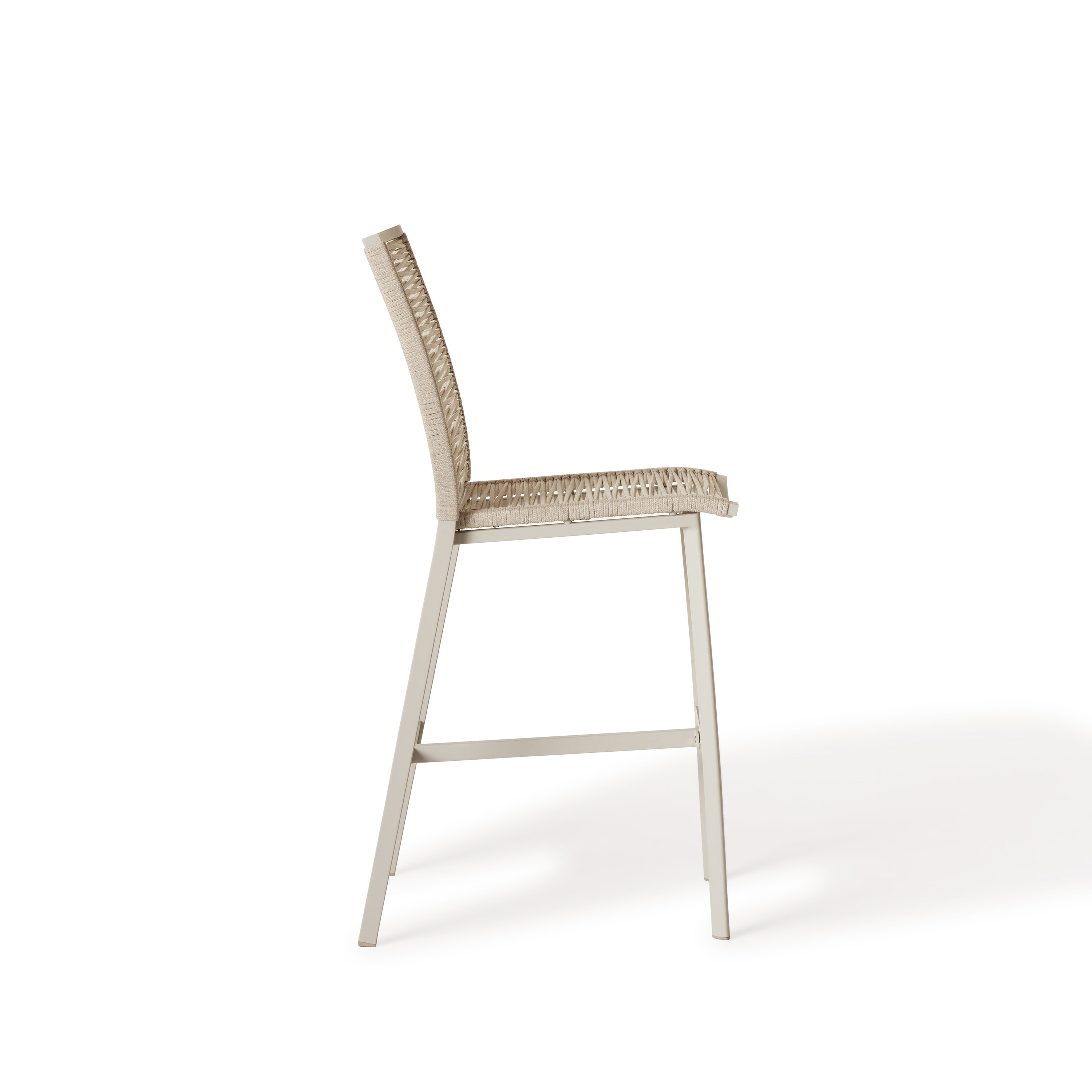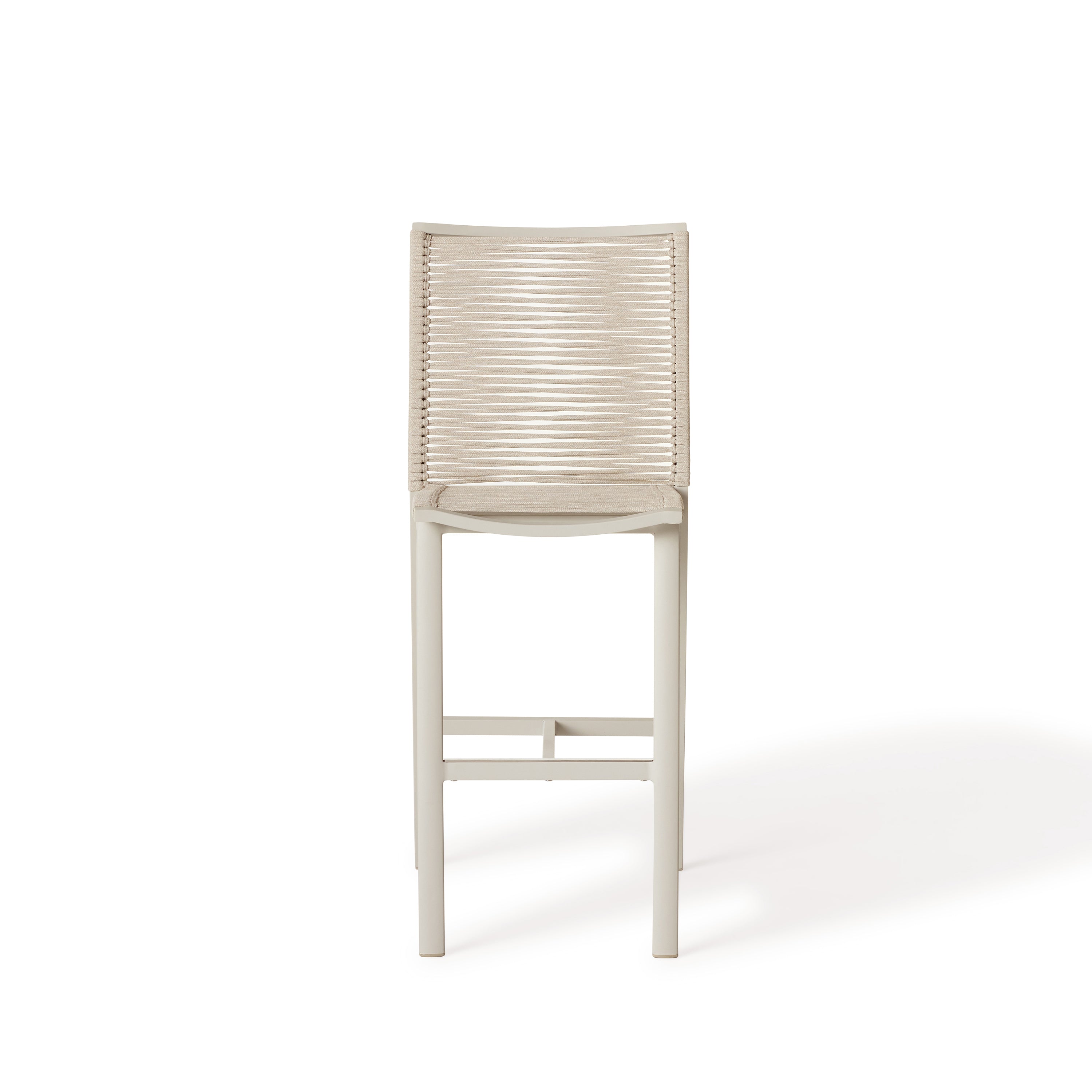 Clean lines engineered for ergonomics. Built to weather the elements with style. The Diablo Bar Side Chair pairs sculpted, Dune aluminum frames with flat-woven Italian rope that cradles the body in comfort.