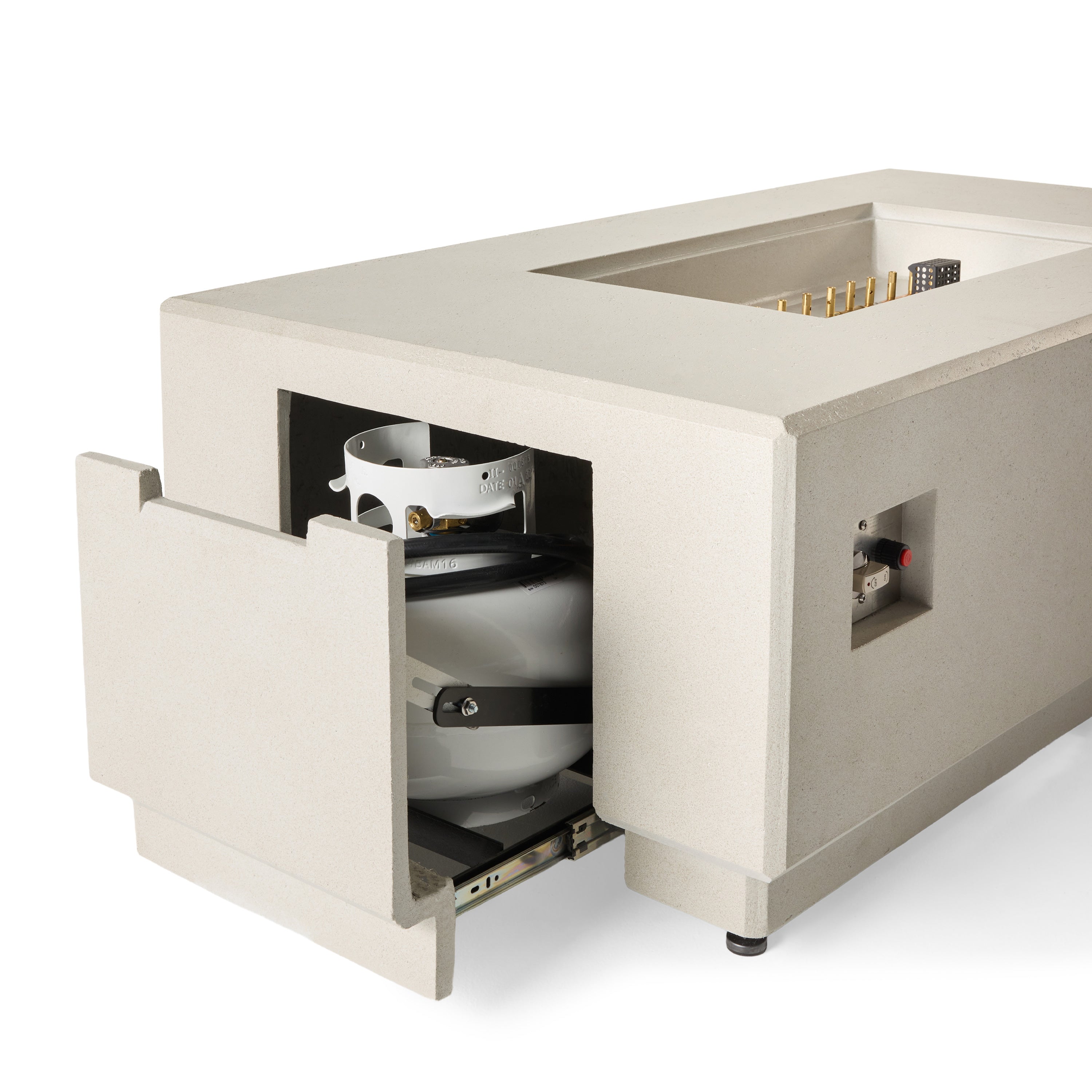 Featuring the grand presence of its namesake tree, our Sequoia Fire Table conceals an 11-lb. propane tank to provide evergreen style all year long. Use it in the fall and winter to keep warm, then add the lid in the spring and summer to transform it into a large coffee table. It’s crafted in the USA of GFRC, a composite that delivers superior weather-resistance and durability with all the industrial appeal of concrete.