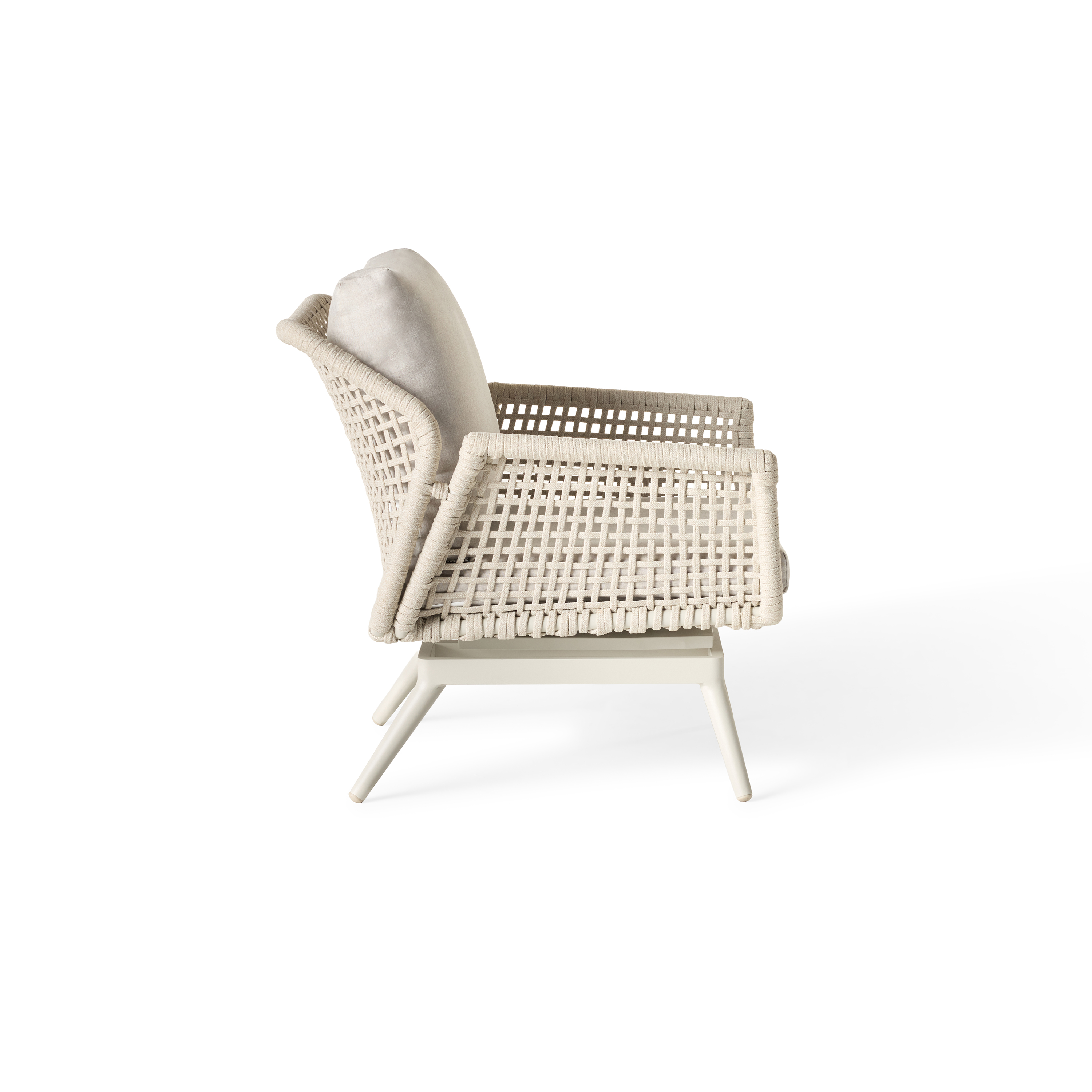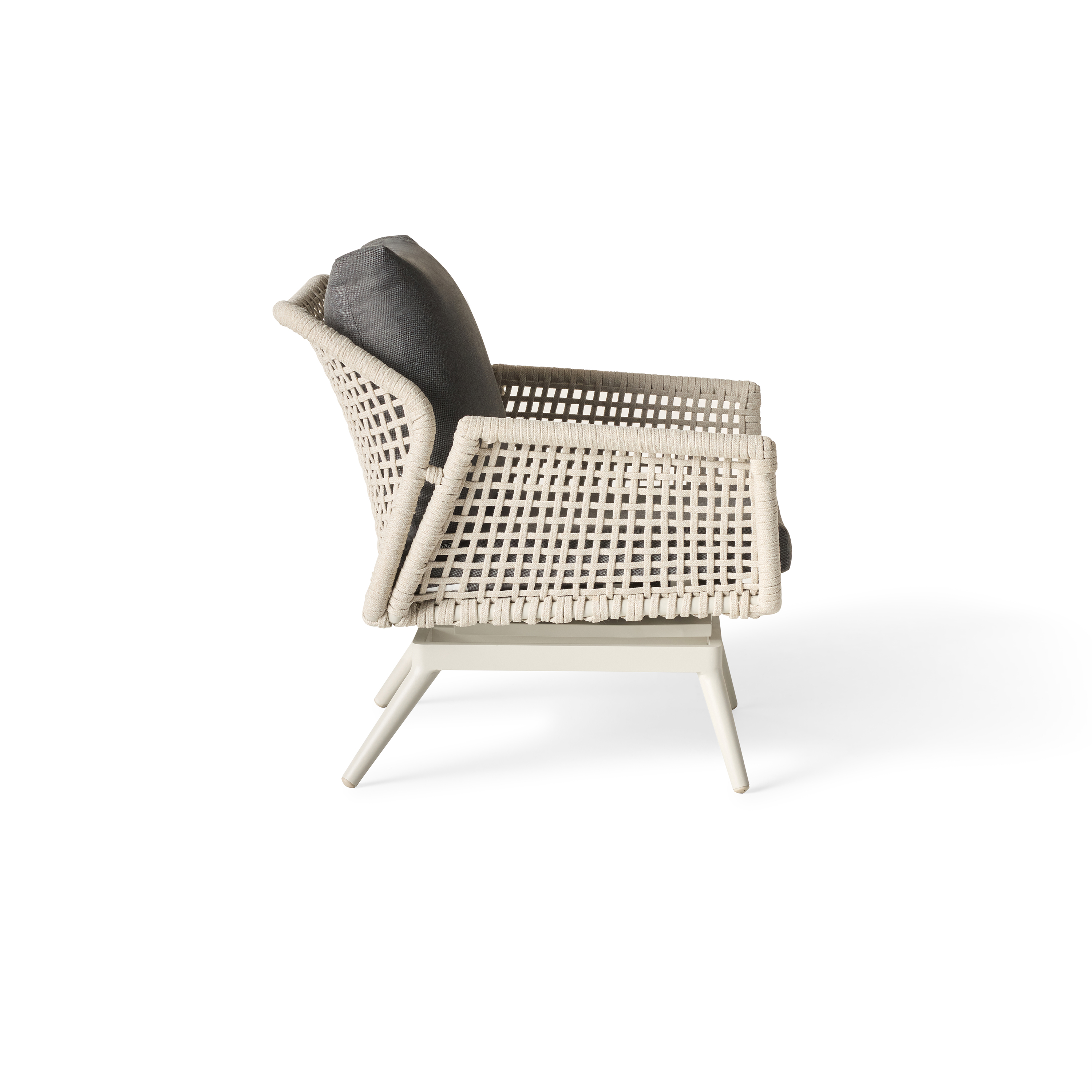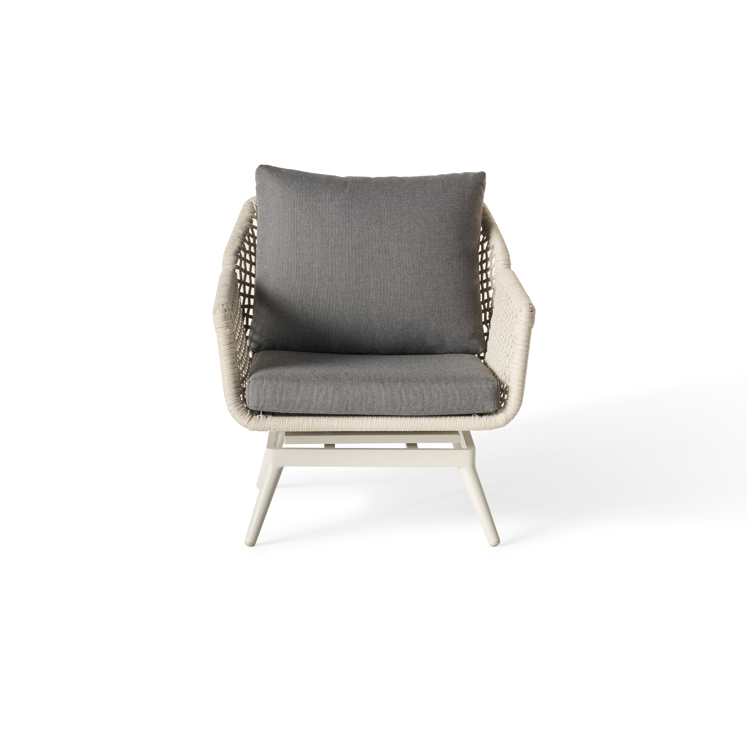 Tubular frames. Tapering legs. Echoes of retro design in up-to-the-minute materials. Montecito’s sculptural curves are cloaked in a durable powdercoat finish and wrapped in flat-woven Italian rope that’s soft, strong and unfazed by the elements. Plump, weather-friendly cushions invite you to sit back and stay for a while.