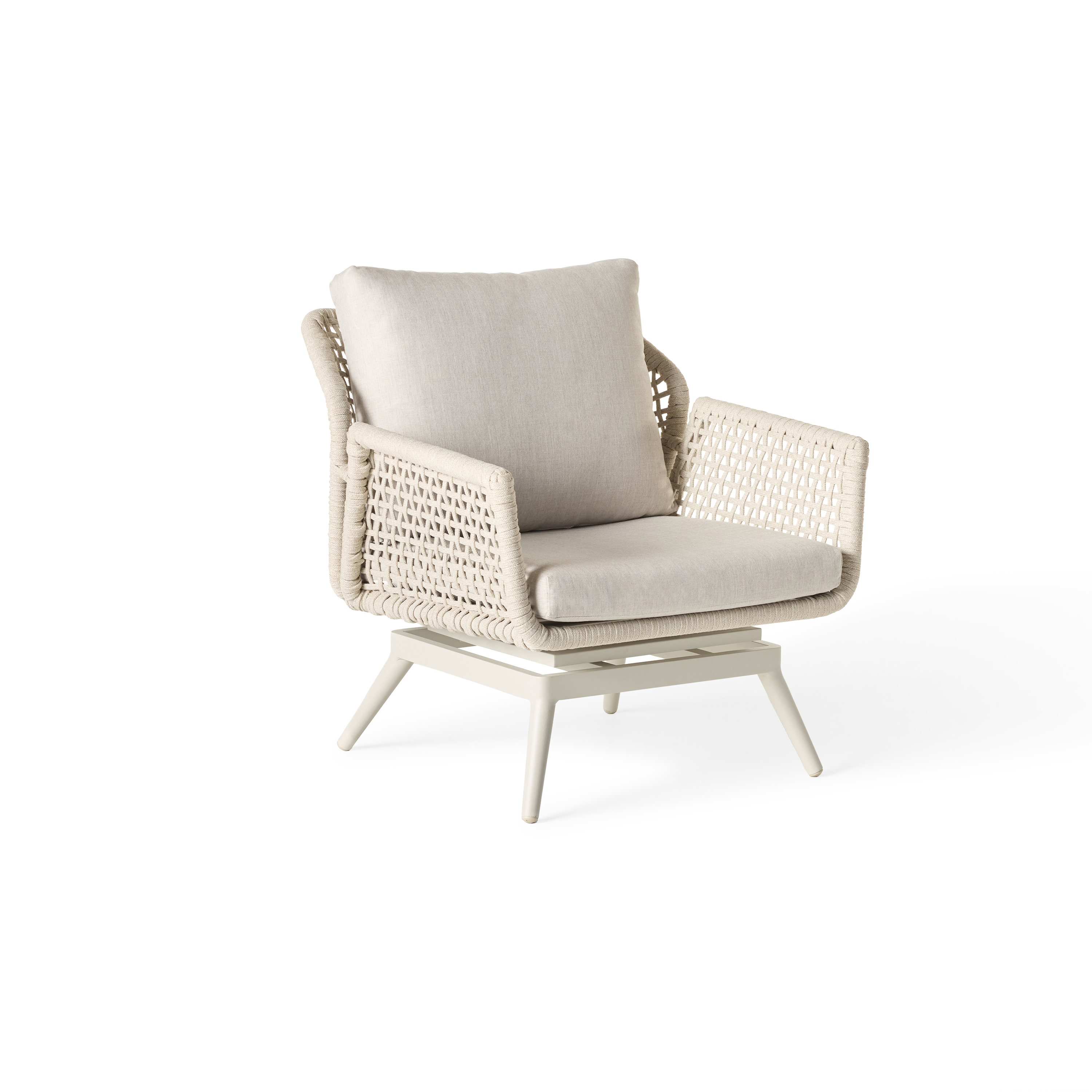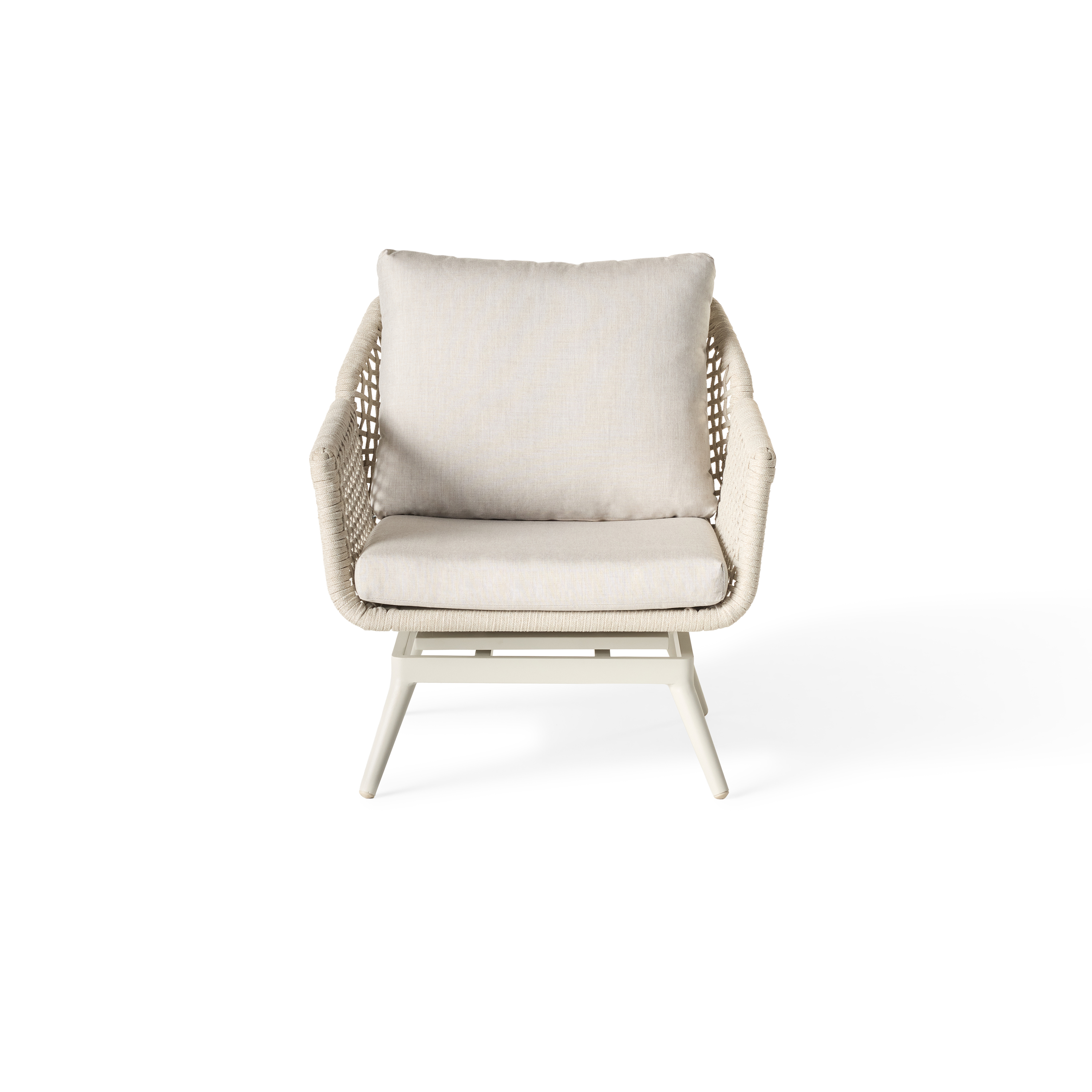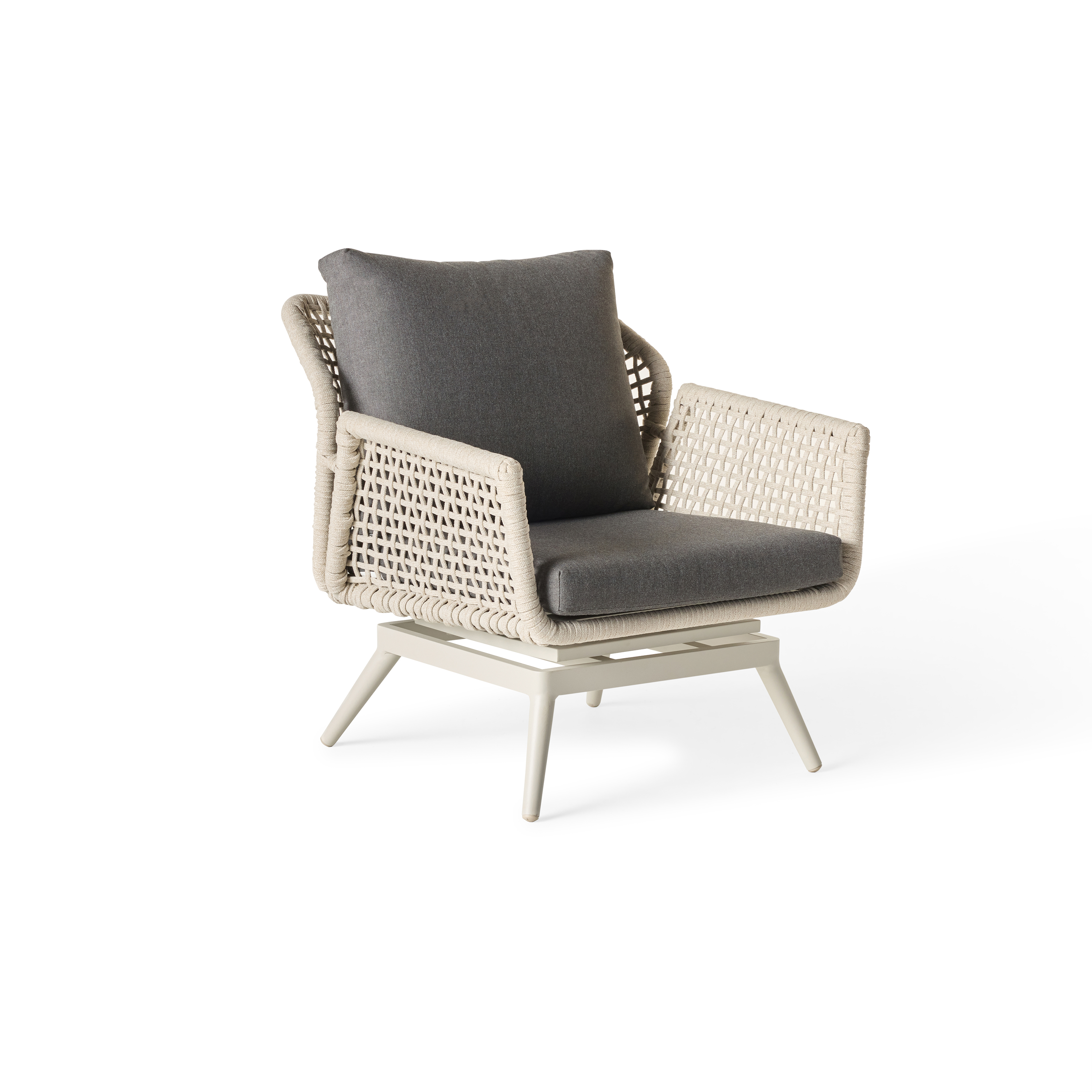 Tubular frames. Tapering legs. Echoes of retro design in up-to-the-minute materials. Montecito’s sculptural curves are cloaked in a durable powdercoat finish and wrapped in flat-woven Italian rope that’s soft, strong and unfazed by the elements. Plump, weather-friendly cushions invite you to sit back and stay for a while.