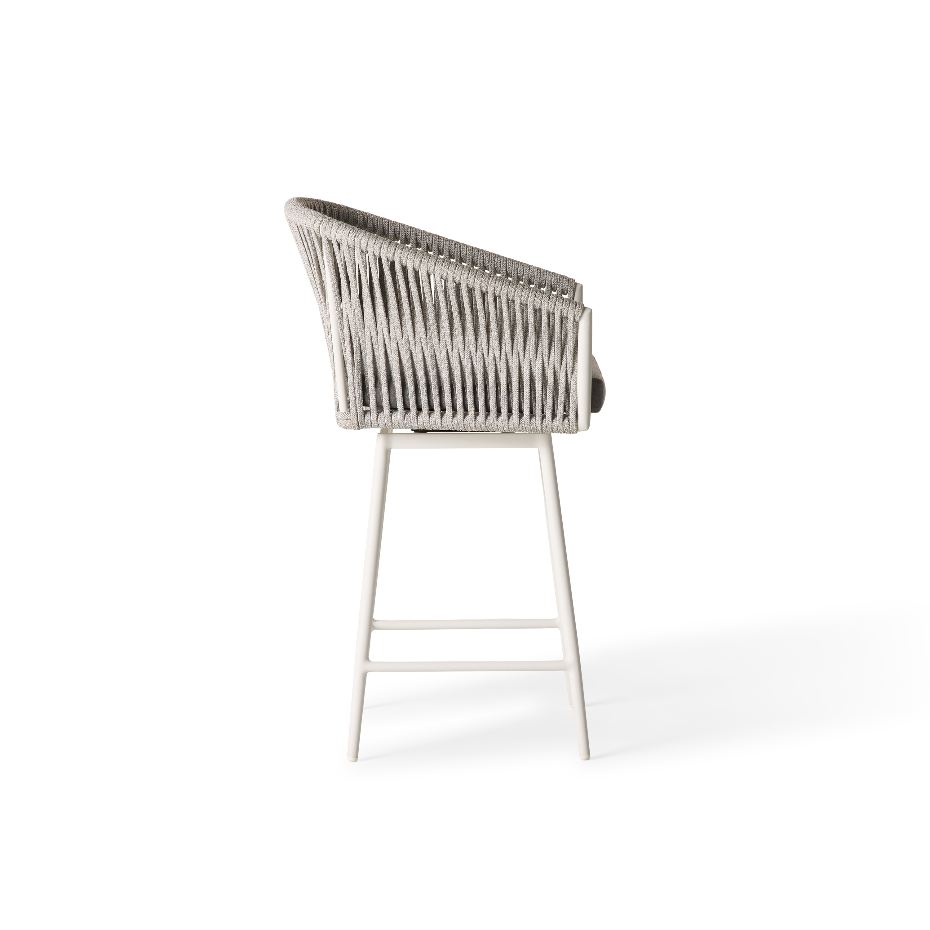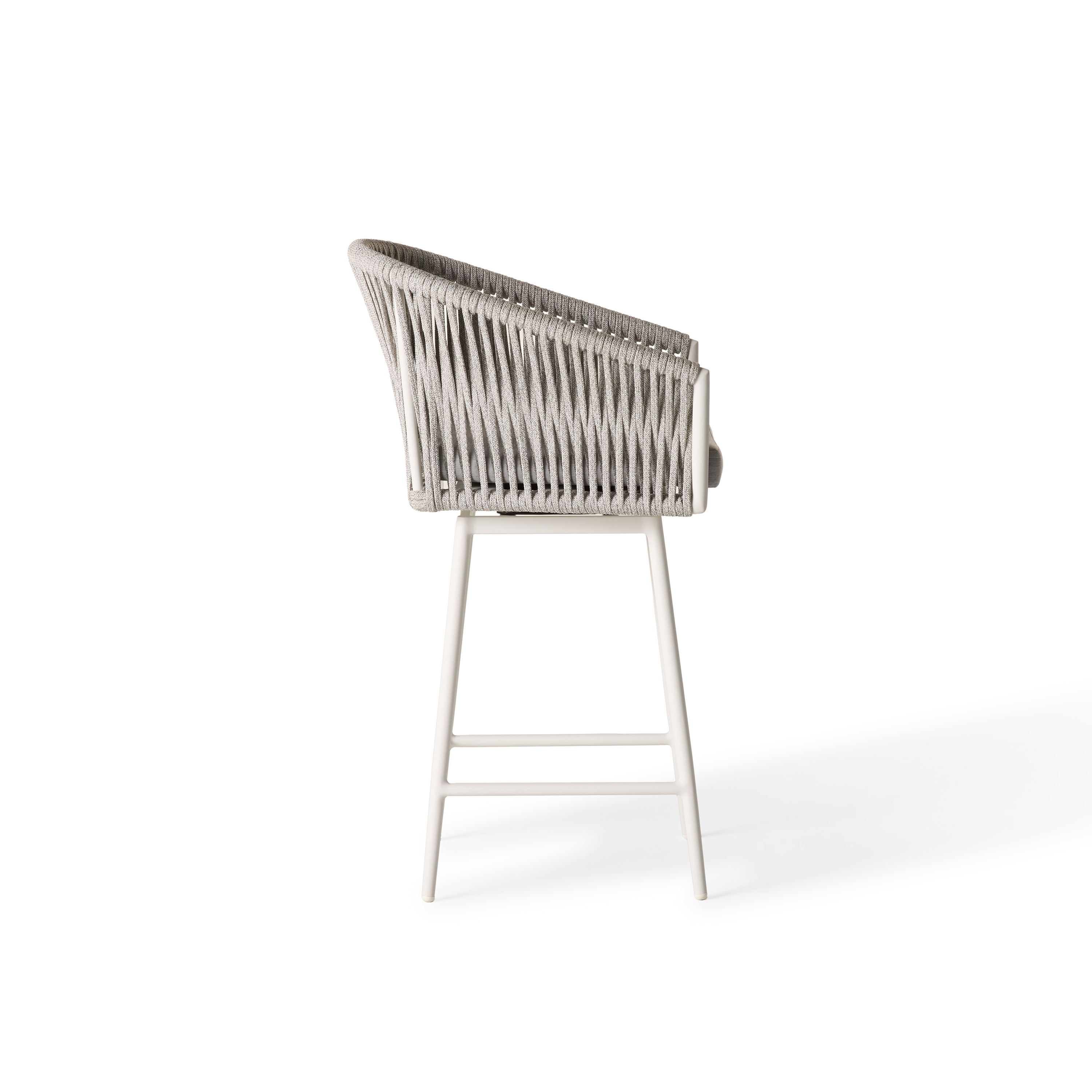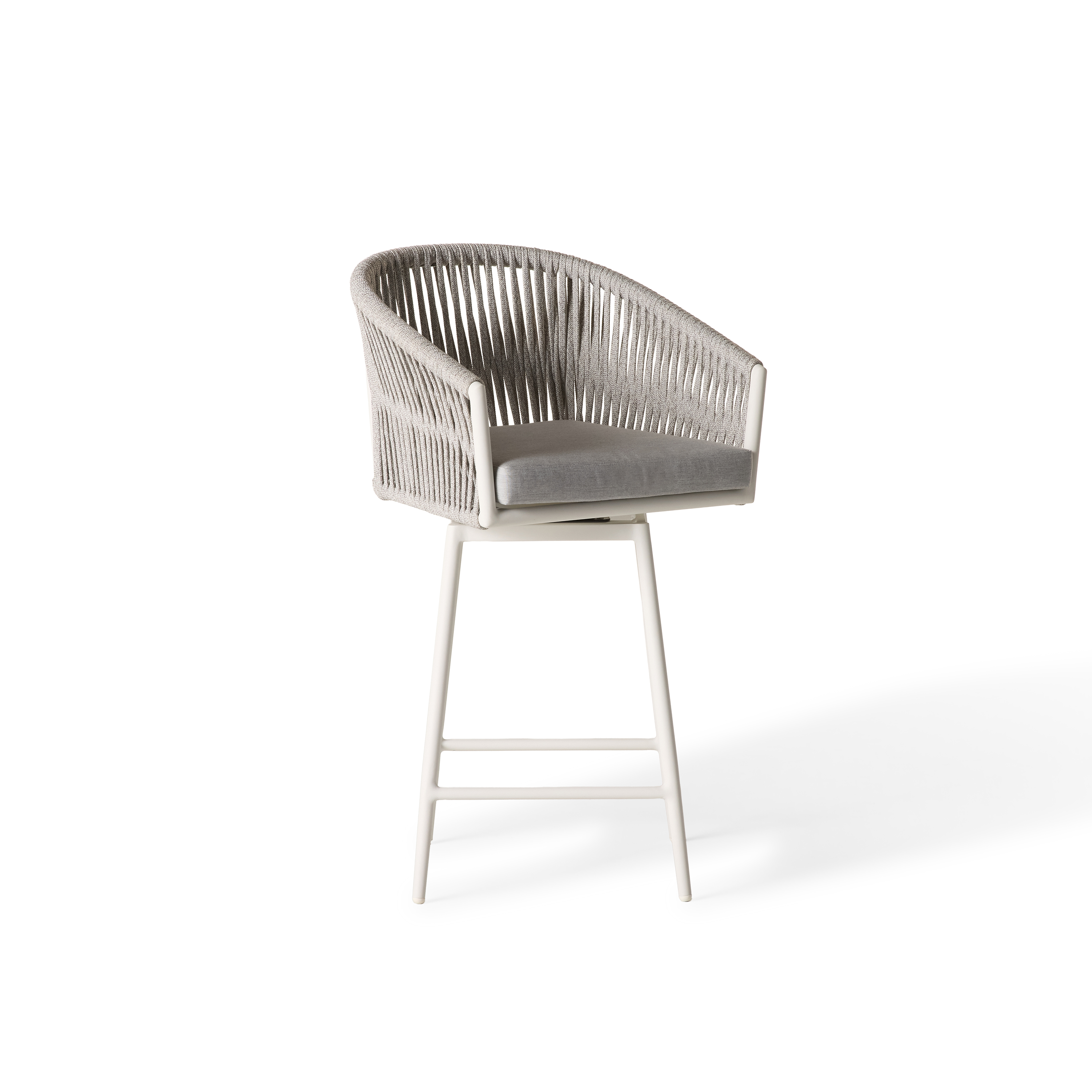 Wraparound curves and tapered legs. Sleek matte Aluminum covered in durable Italian-made rope. Strength and support with airy presence. Olema deftly mixes eye-catching design with weather-friendly materials, for style and comfort that endure – season after season.