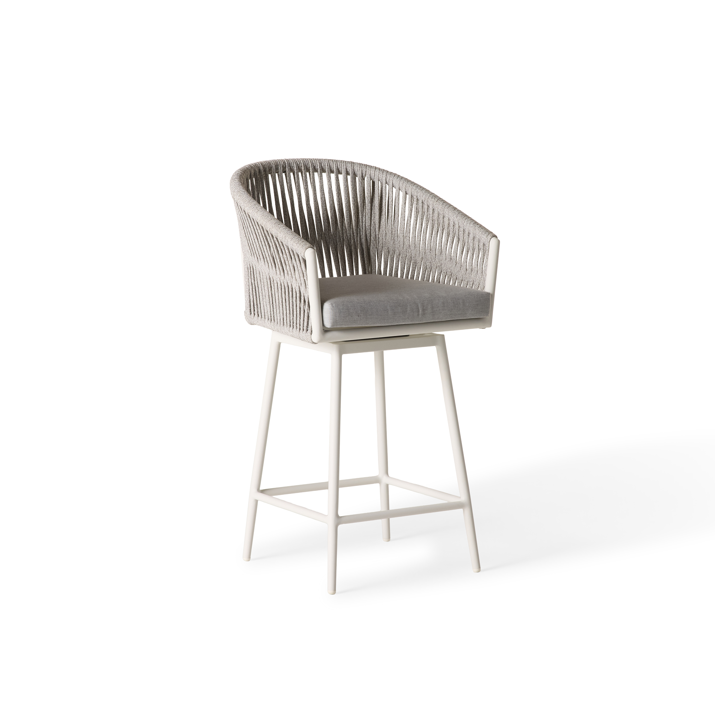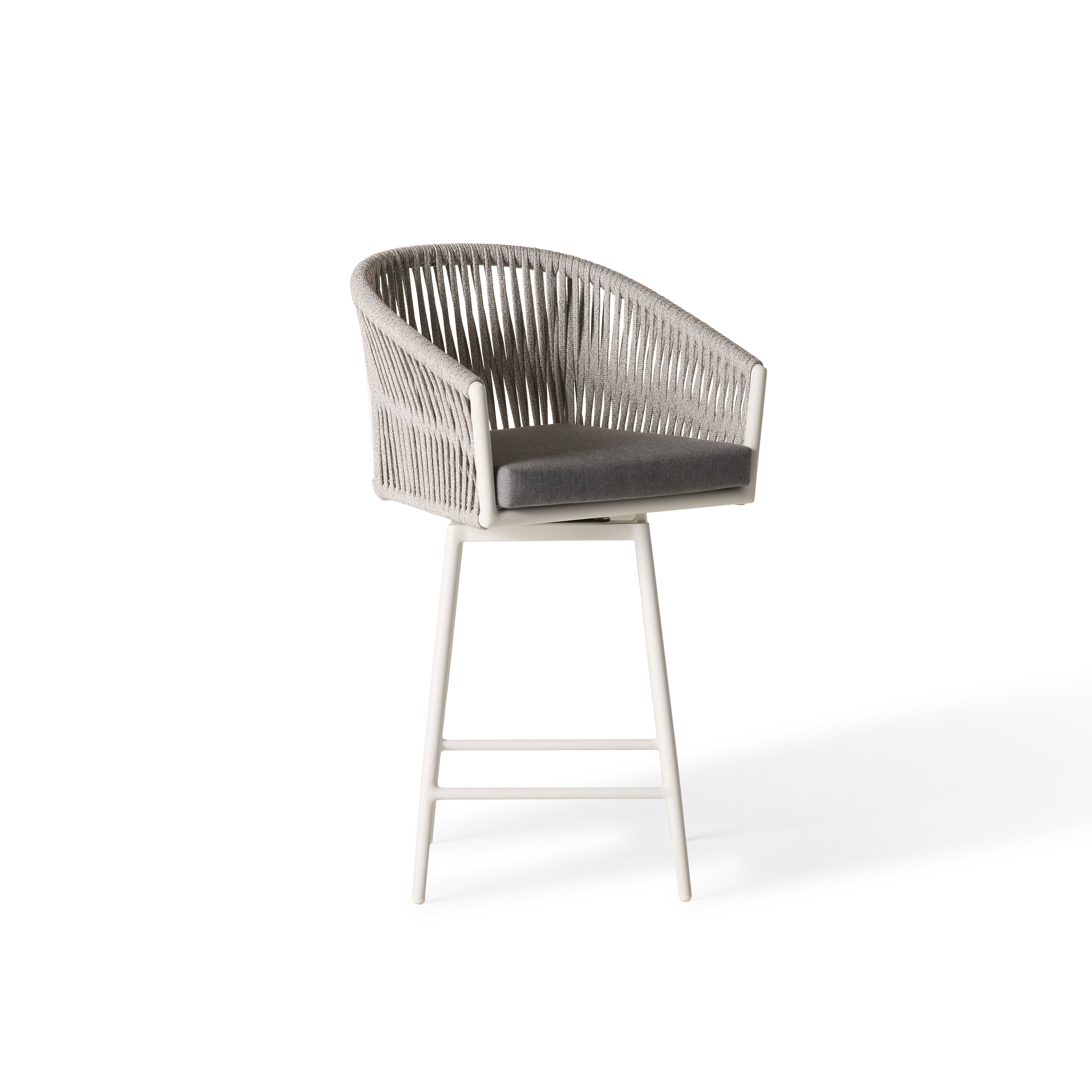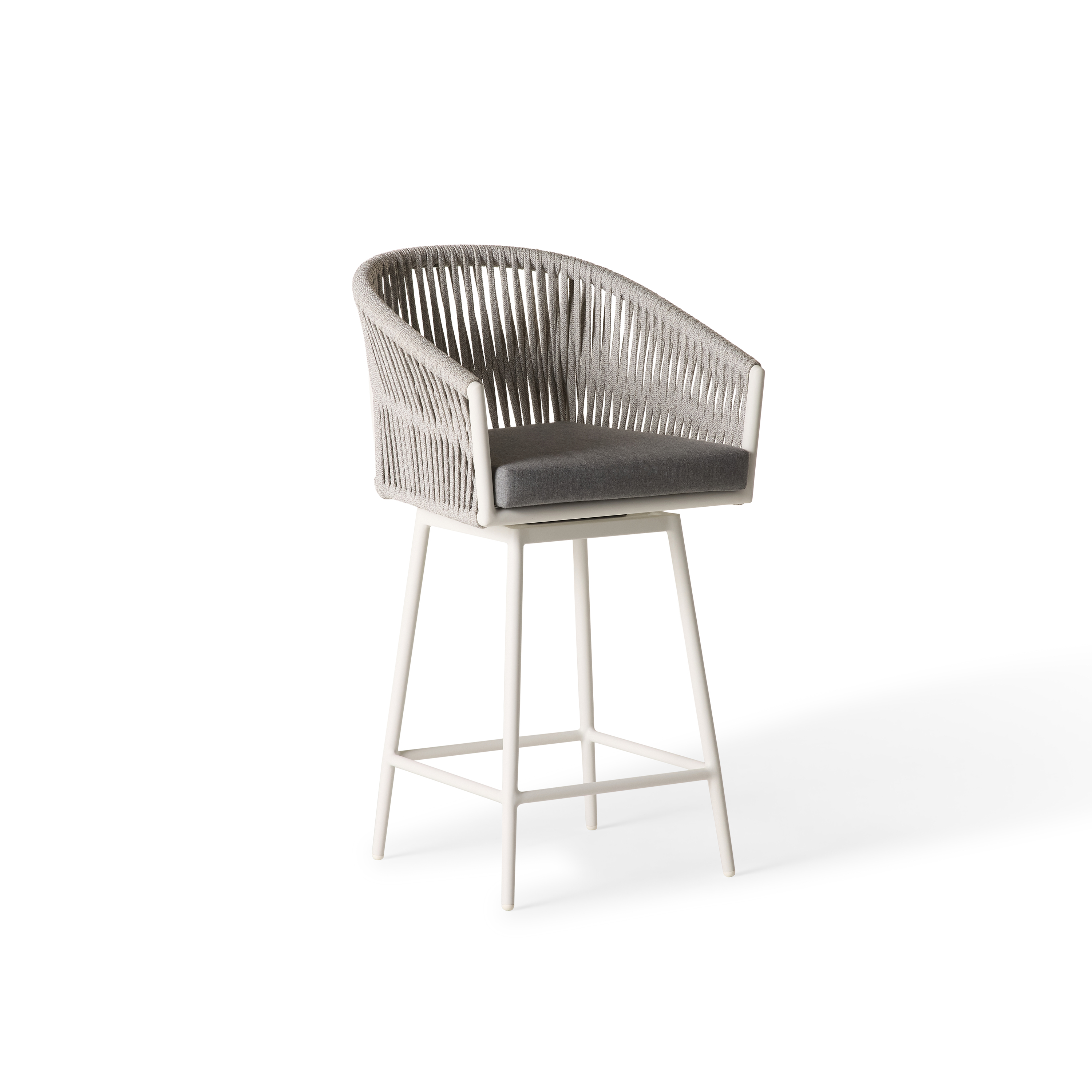 Wraparound curves and tapered legs. Sleek matte Aluminum covered in durable Italian-made rope. Strength and support with airy presence. Olema deftly mixes eye-catching design with weather-friendly materials, for style and comfort that endure – season after season.
