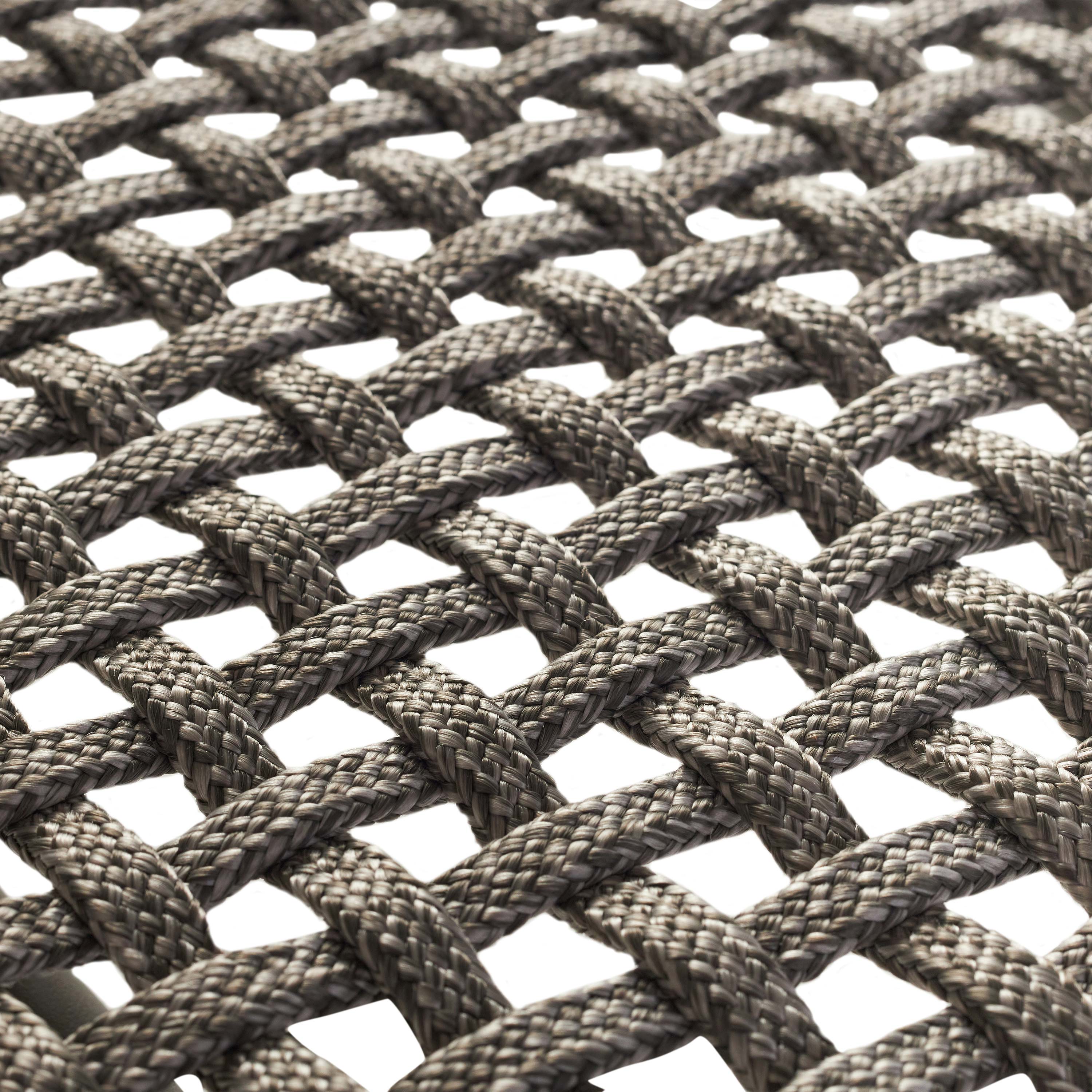 • Tubular frames are crafted of aluminum wrapped in Italian polyolefin rope