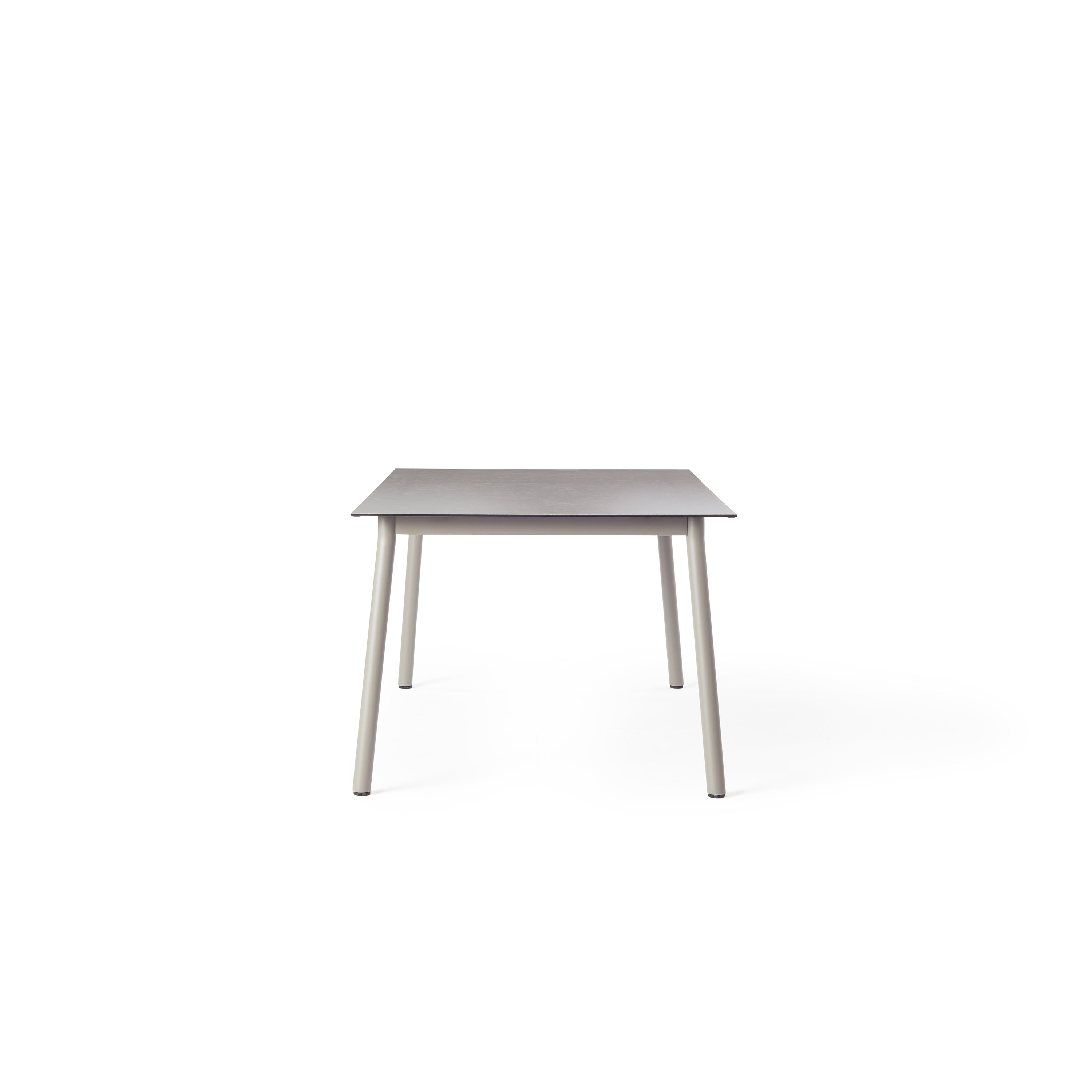 Strong, quartz grey aluminum frames with retro rounded corners. The attractive look of ceramic with the durability of tempered glass. The Presidio dining table brings gracious dining to spaces large and small with compact footprints, airy design and materials that are built to endure.