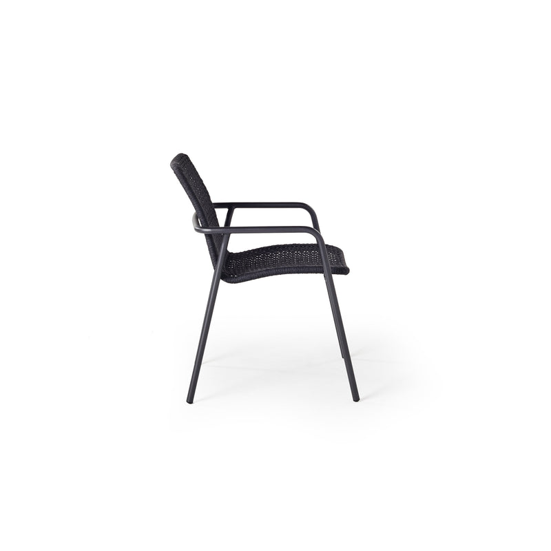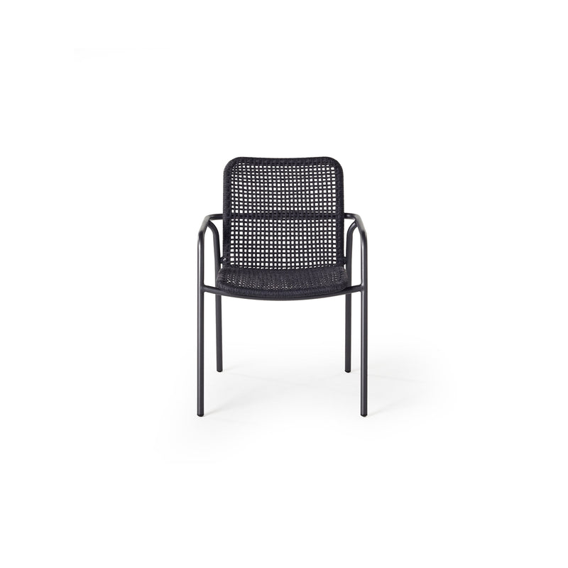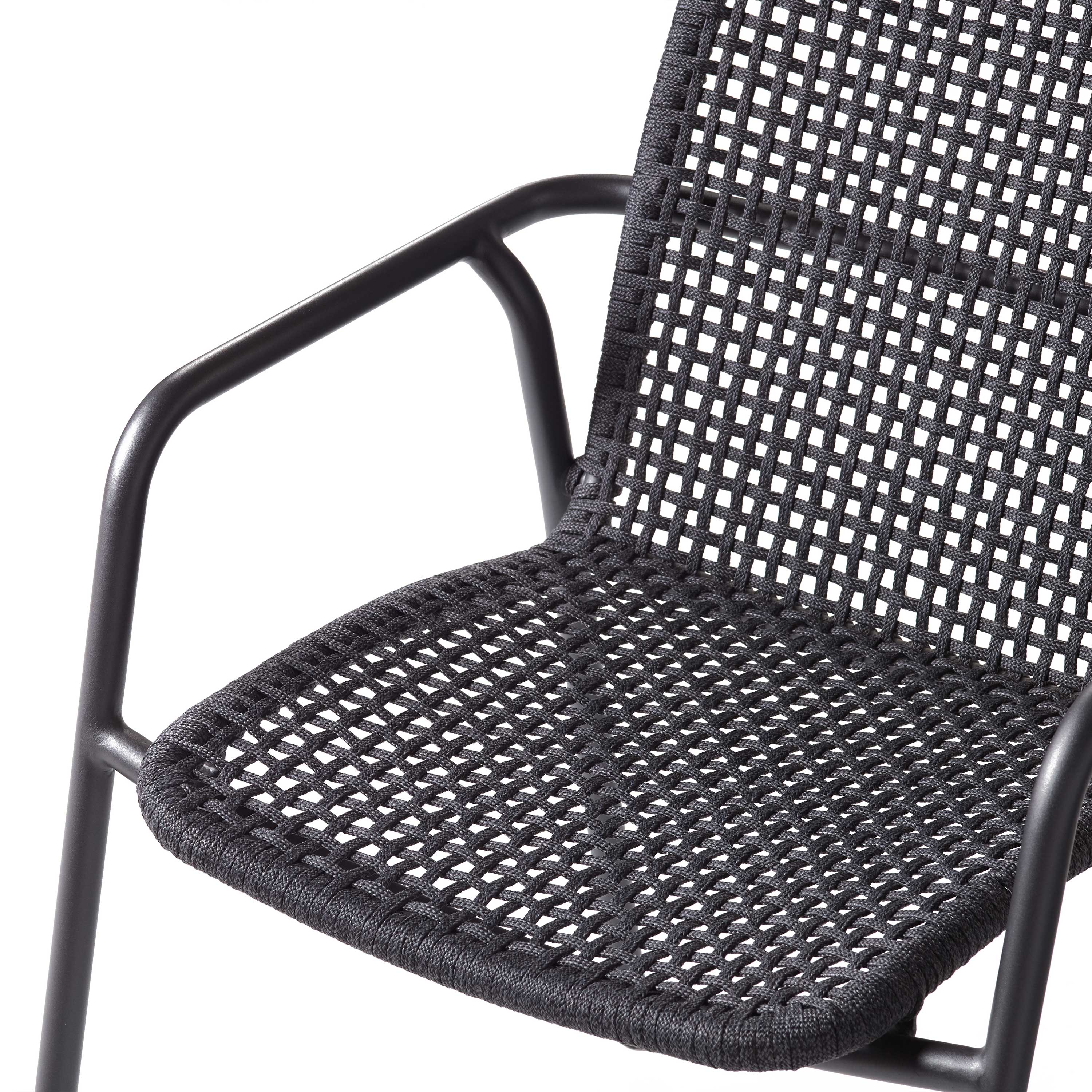 Strong aluminum frames with retro rounded corners. Seats woven with resilient Italian rope for easy care and breezy comfort. Presidio brings gracious dining to spaces large and small with compact footprints, airy design and materials that are built to endure.