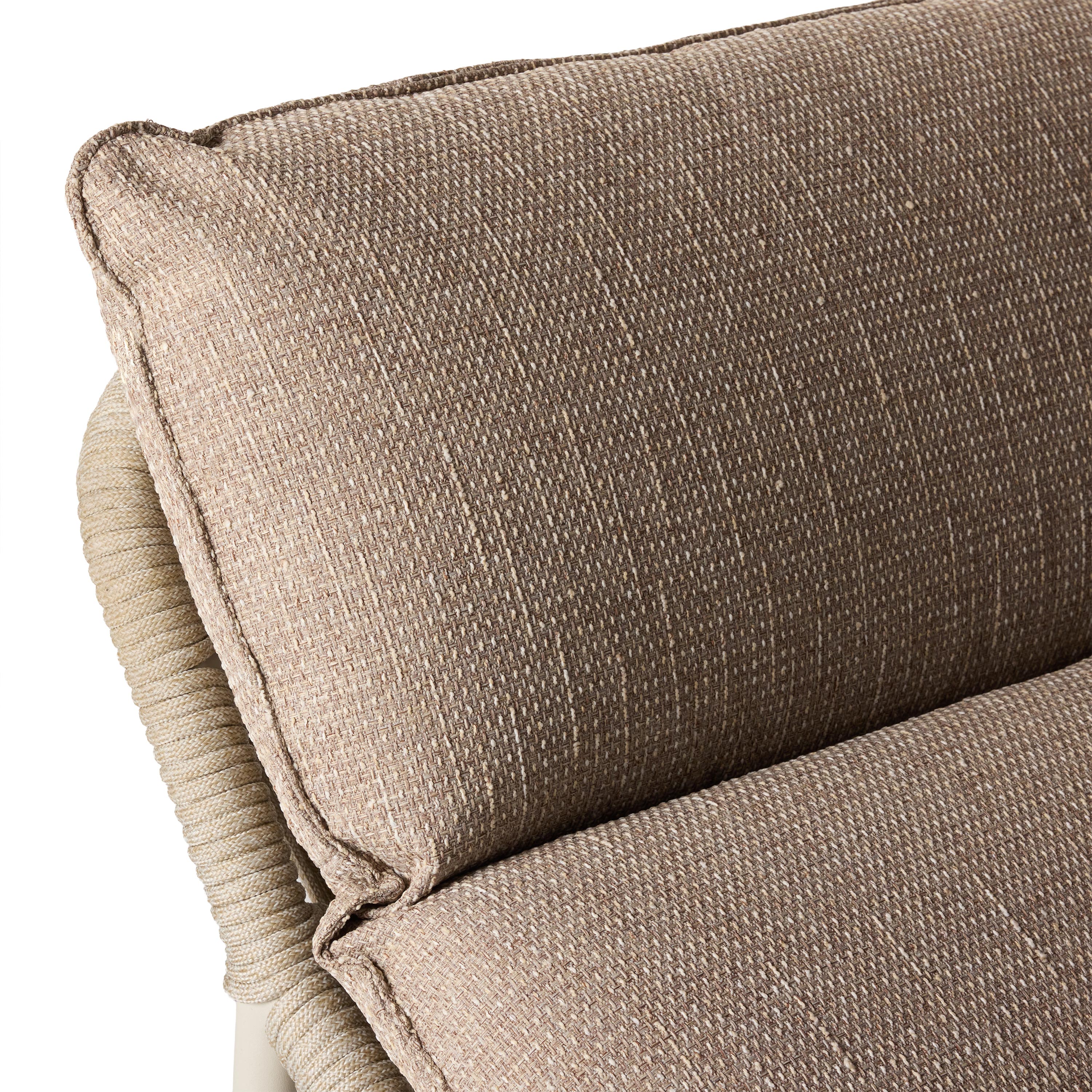 Perfectly positioned to soak up the sun, the South Bay lounger balances ergonomic comfort with architectural finesse. The sleek aluminum frame is wrapped with all-weather rope in an elegant geometric design that provides both visual appeal and strong support. Topped with a plush cushion covered in textured bouclé, this resort-inspired stunner withstands the elements to deliver high-end style for year-round relaxing.