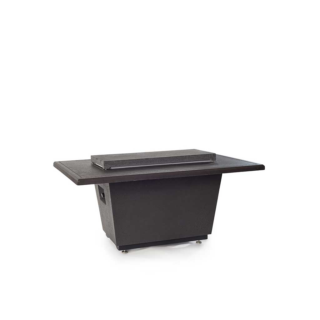 Handcrafted from ultra-durable, crack-resistant GFRC, the Indio Rectangular Fire Table in Black Lava has clean lines and a slim profile that complement both traditional and contemporary outdoor furnishings. The stainless-steel burner is surrounded by a broad top designed for entertaining. Levelers on the feet make the table easy to place – even on uneven surfaces like flagstone and brick.