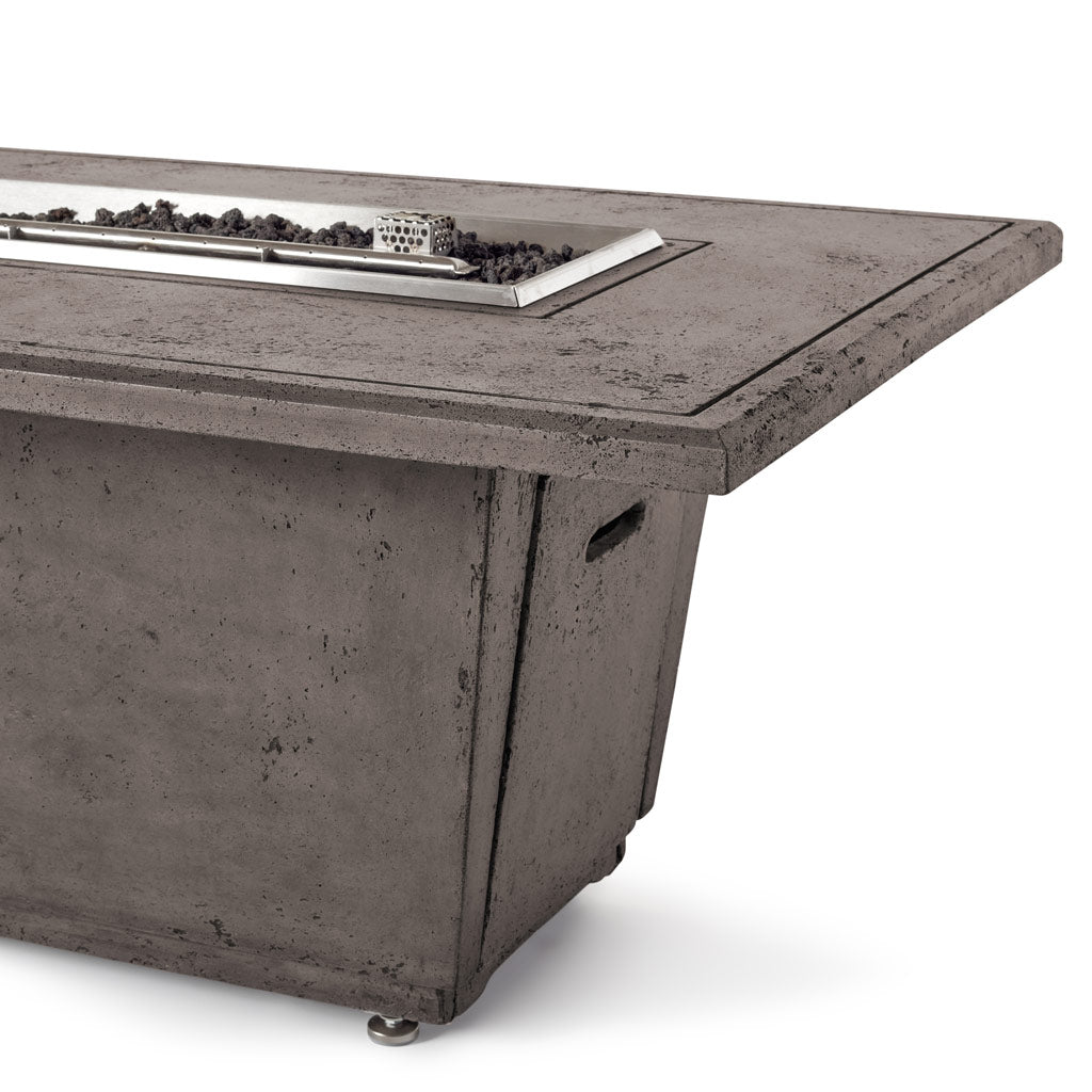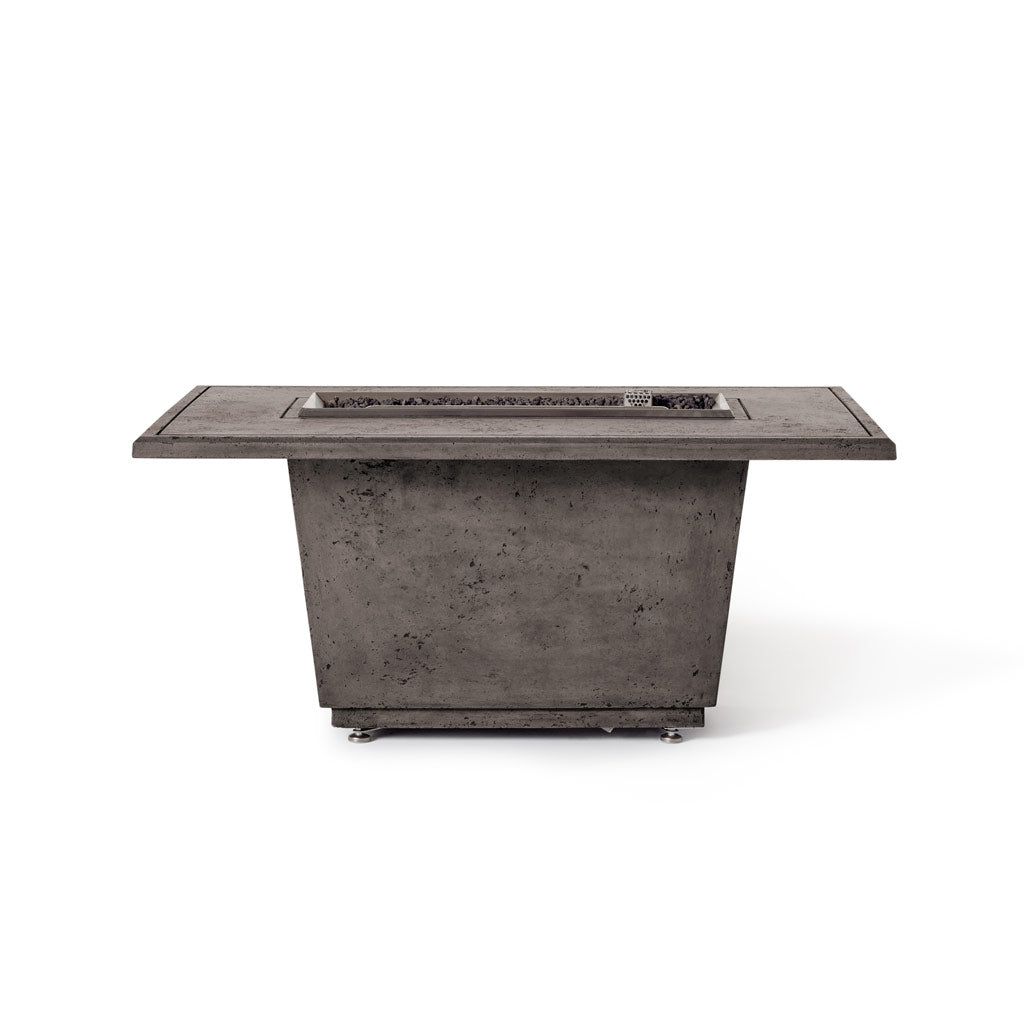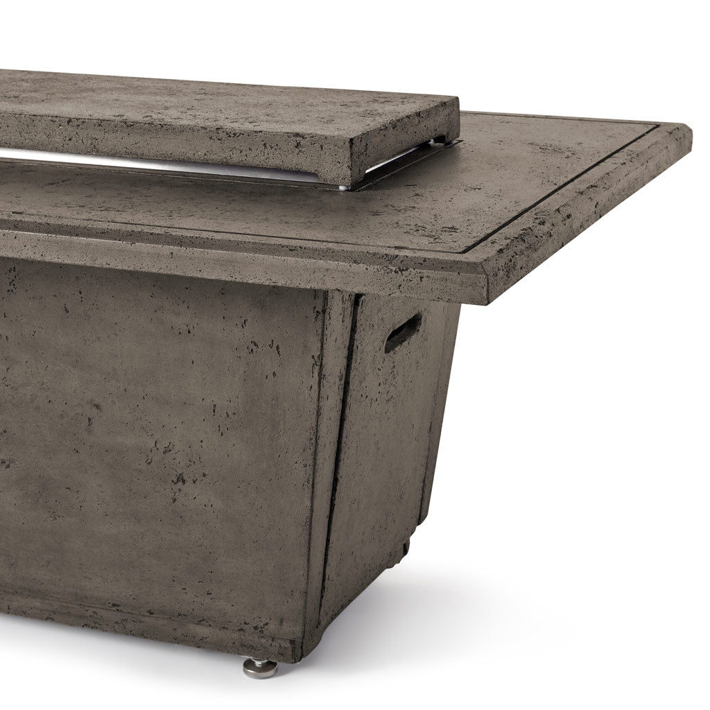 Handcrafted from ultra-durable, crack-resistant GFRC, the Indio Rectangular Fire Table in Dark Basalt has clean lines and a slim profile that complement both traditional and contemporary outdoor furnishings. The stainless-steel burner is surrounded by a broad top designed for entertaining. Levelers on the feet make the table easy to place – even on uneven surfaces like flagstone and brick.