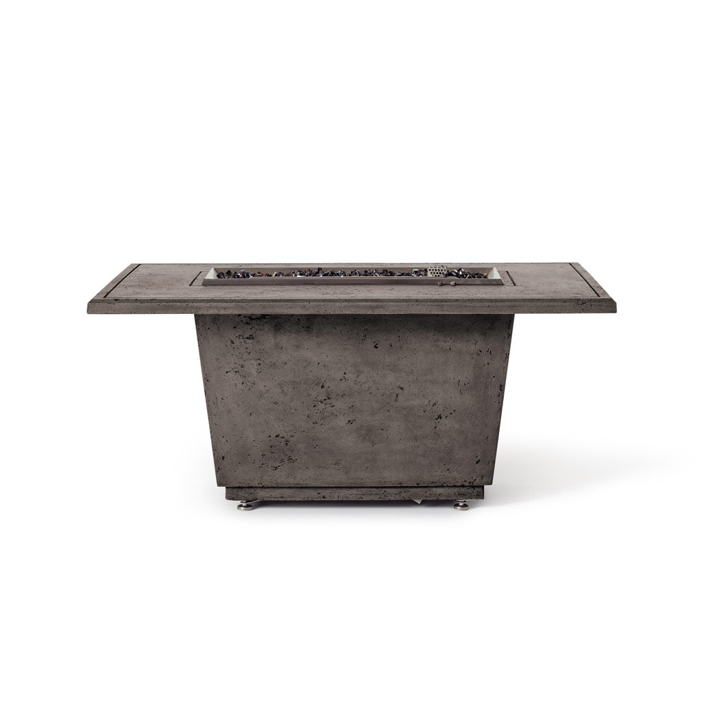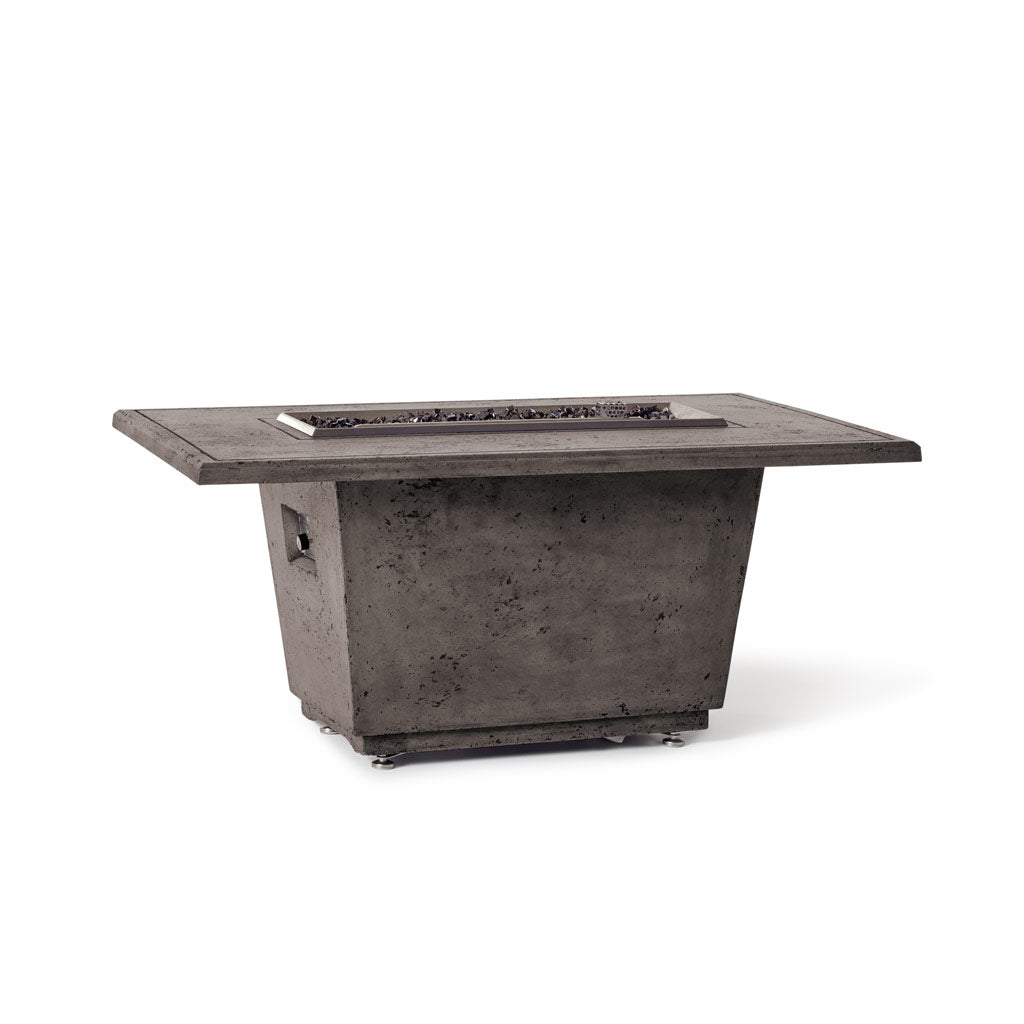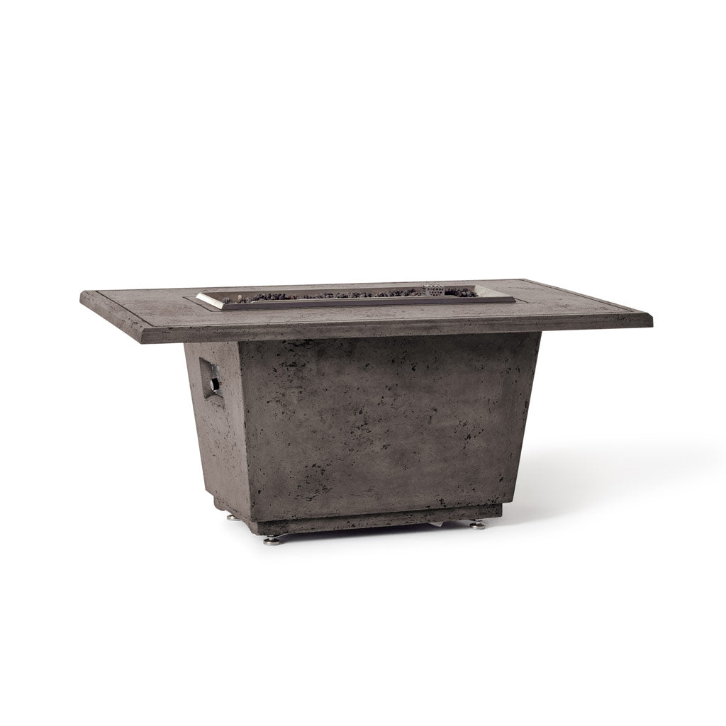 Handcrafted from ultra-durable, crack-resistant GFRC, the Indio Rectangular Fire Table in Dark Basalt has clean lines and a slim profile that complement both traditional and contemporary outdoor furnishings. The stainless-steel burner is surrounded by a broad top designed for entertaining. Levelers on the feet make the table easy to place – even on uneven surfaces like flagstone and brick.
