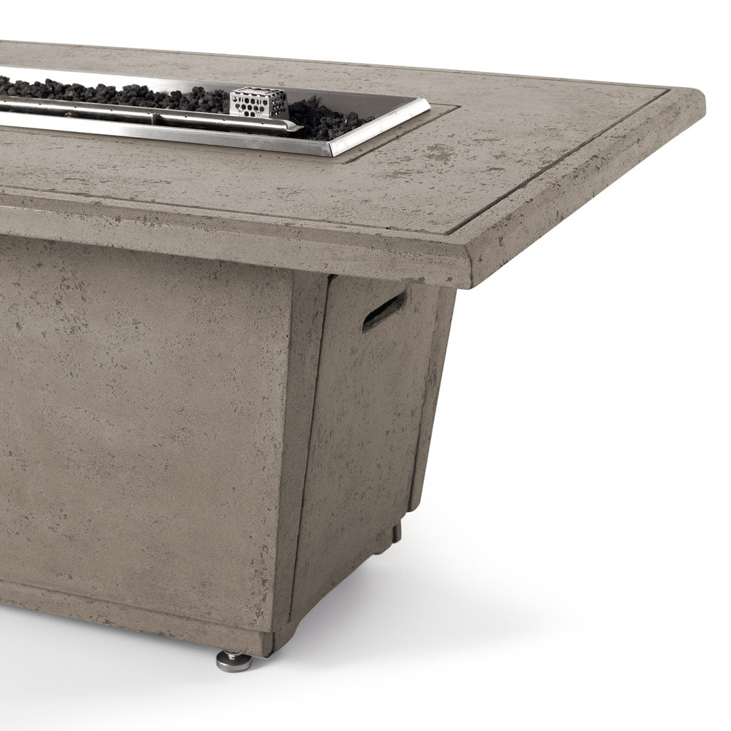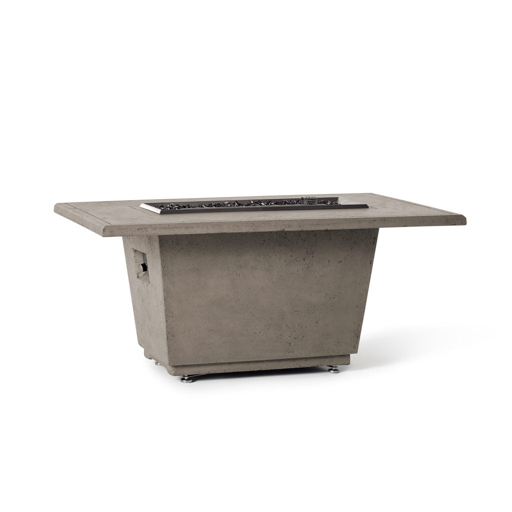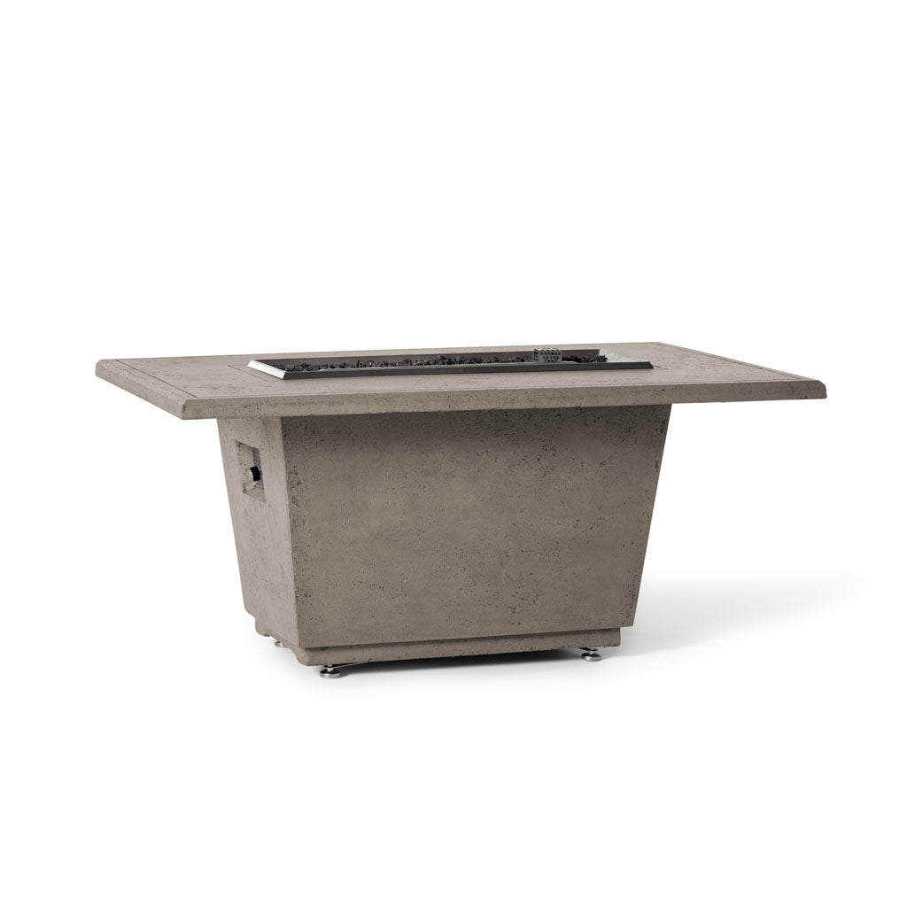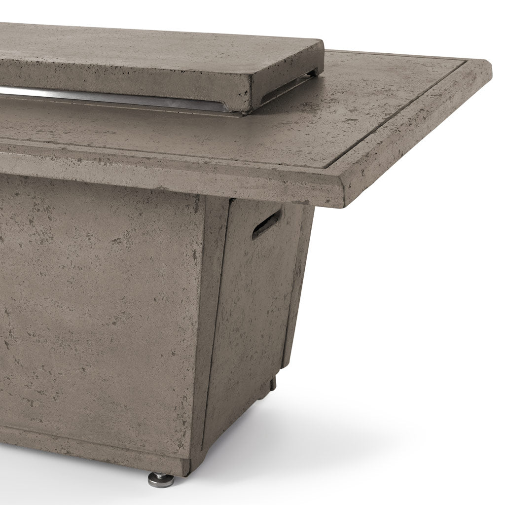 Handcrafted from ultra-durable, crack-resistant GFRC, the Indio Rectangular Fire Table in Light Basalt has clean lines and a slim profile that complement both traditional and contemporary outdoor furnishings. The stainless-steel burner is surrounded by a broad top designed for entertaining. Levelers on the feet make the table easy to place – even on uneven surfaces like flagstone and brick.
