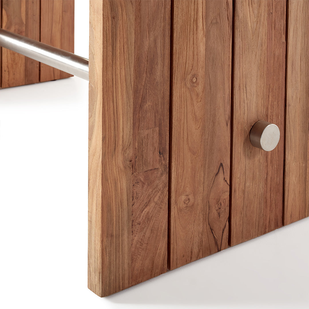Zen and the art of outdoor living. Reclaimed teak brings rustic warmth to Sea Ranch’s bold yet simple silhouettes. Sleek stainless-steel stretchers offer compelling contrast to the rich texture of the wood along with a touch of industrial style.