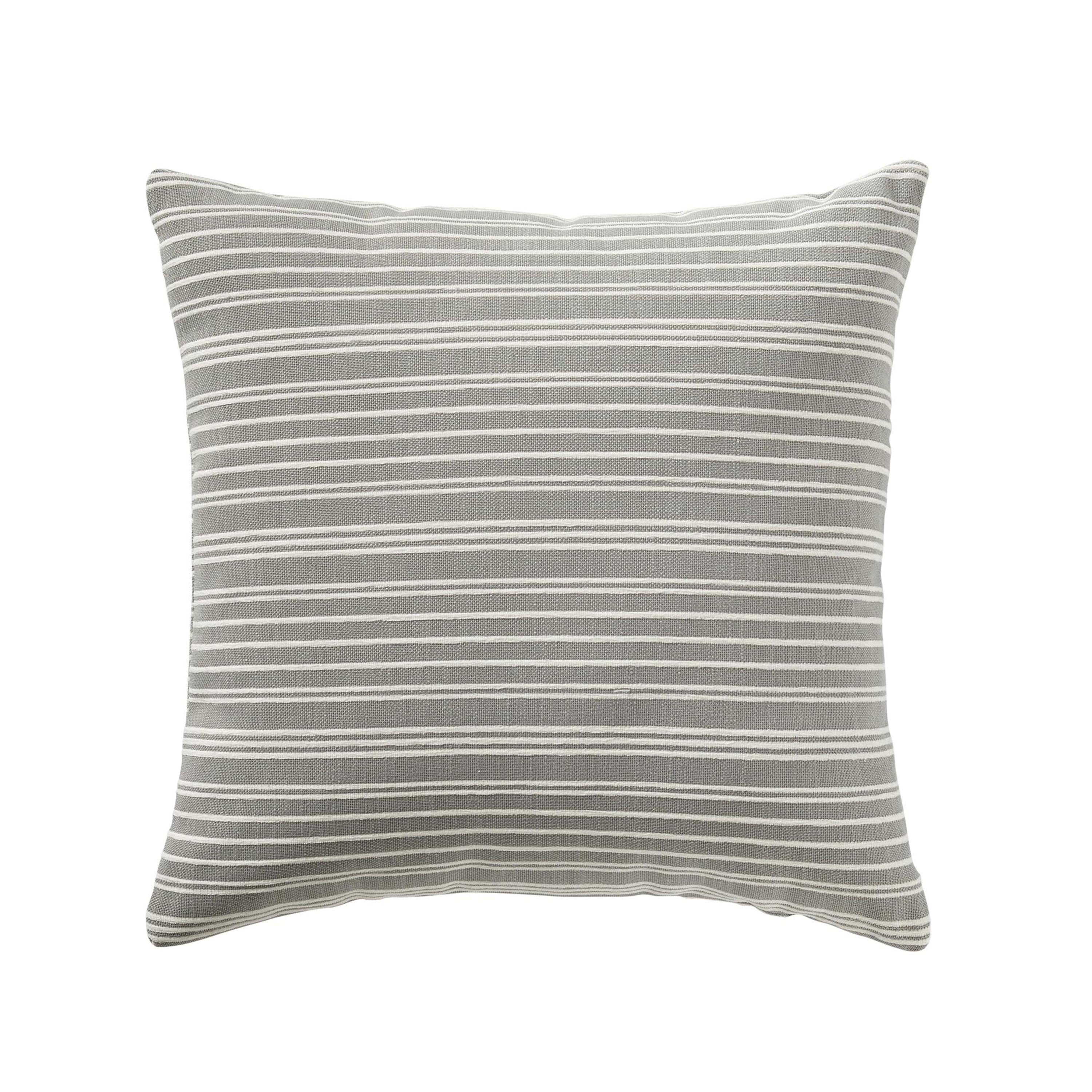 The Endaki pillow features a slubby woven ground with subtly raised stripes, perfectly blending natural textures and clean lines. Varied spacing and a soft pile give timeless stripes a fresh update.