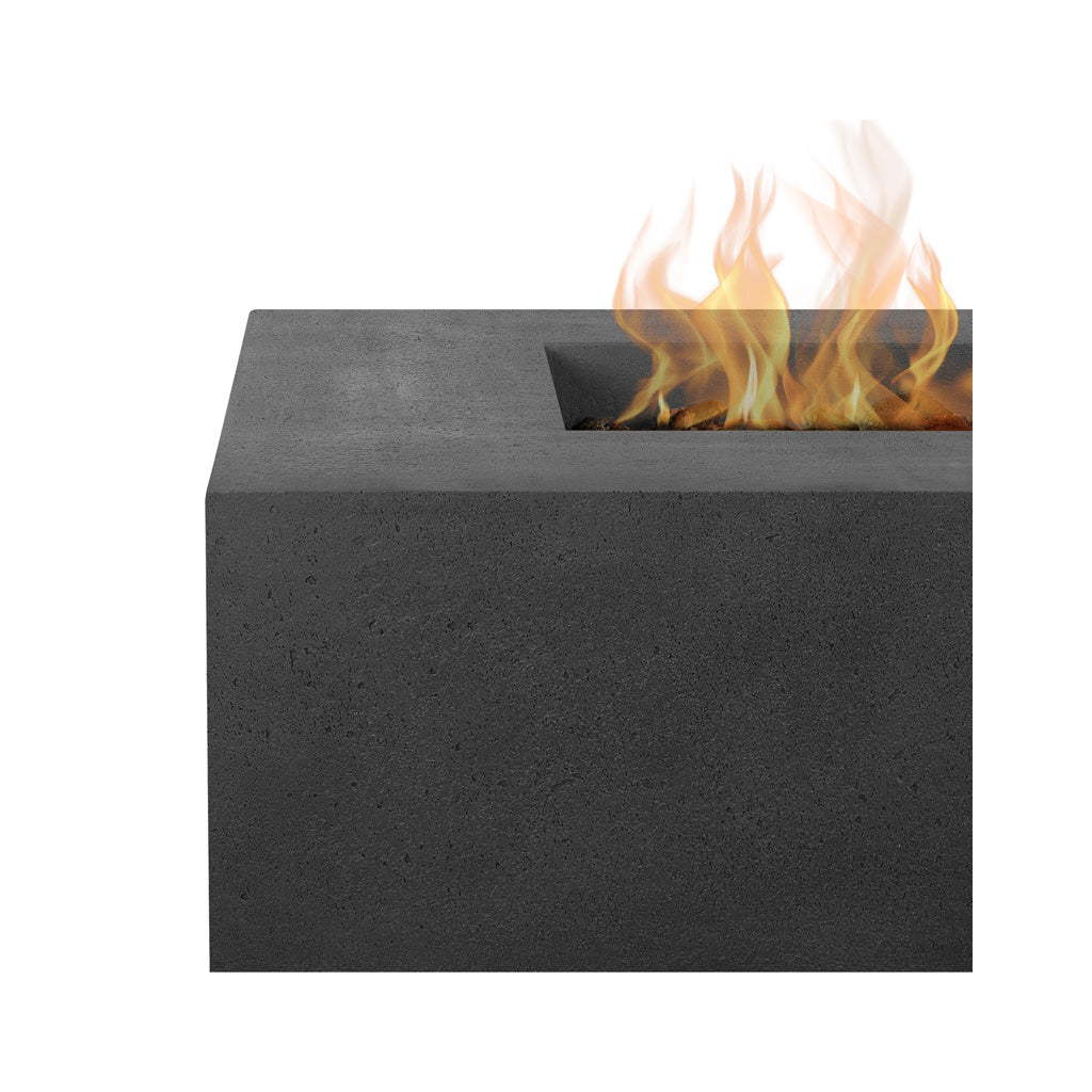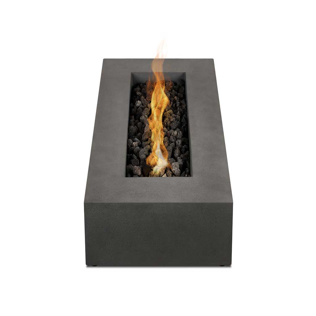 Clean lines and a rustic finish give the Aspen rectangular fire table an industrial edge while the low, modern profile suggests a sophisticated style. Featuring an efficient burner system that produces full, rich flames, and our popular carbon color. Includes protective cover, lava rock, and 10′ LP hose with regulator.