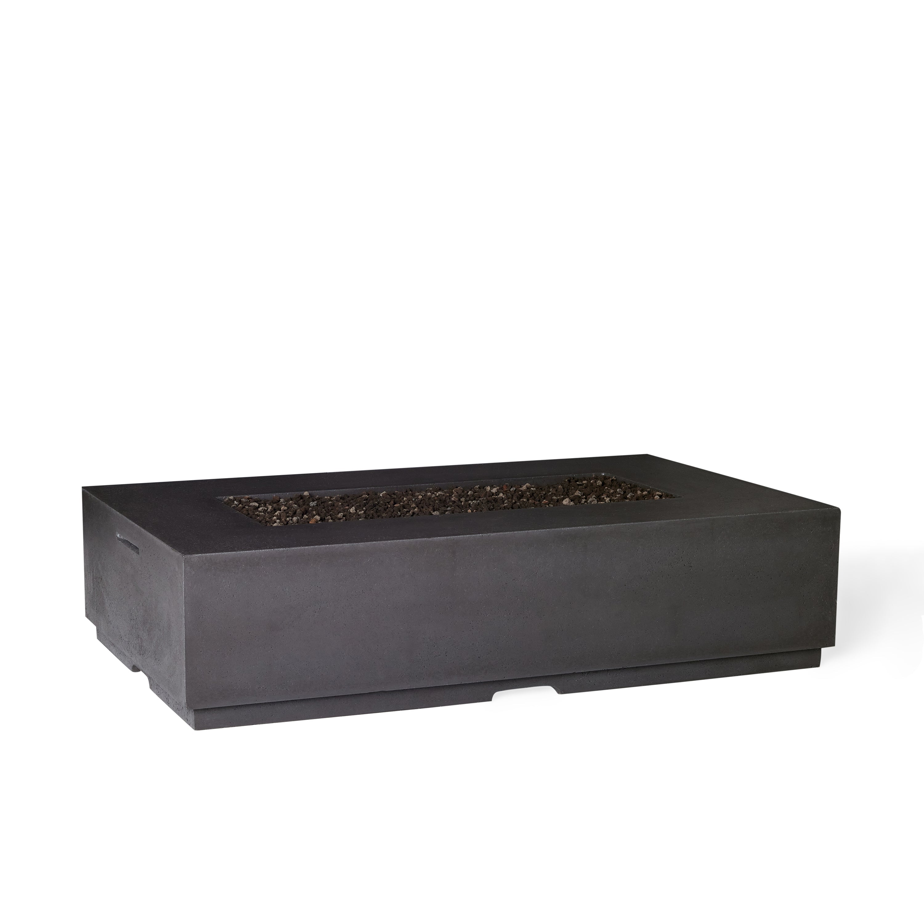 With its monumental silhouette and stone-inspired finish, the Legend Fire Table has statement-making style. It’s handcrafted of GFRC for all-weather durability and rich texture at a lighter weight than conventional concrete. The long, wide stainless-steel burner creates a dramatic display of fire you can customize with media from naturalistic river rocks to vibrant colored glass.