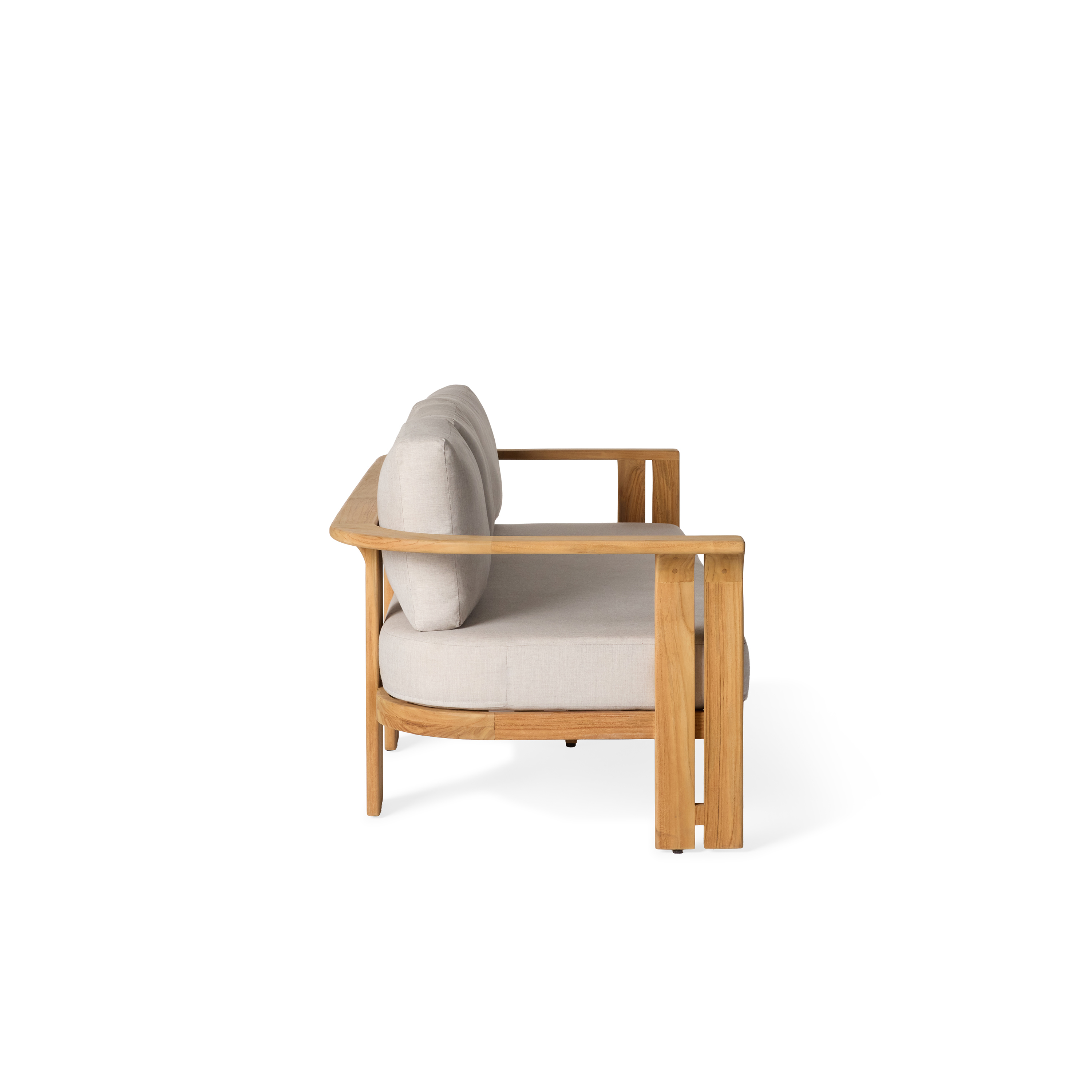 All you need and nothing you don't. Built with an Asian-inspired aesthetic, Ojai exudes an energy as tranquil as the picturesque town for which it is named. Comfortable curved backs and wraparound arms flow into split legs that allow light and air to flow through. Expertly crafted of premium Indonesian teak, the simple silhouettes are set close to the ground and topped with thick Sunbrella® cushions to create a serene sanctuary for contemplation and connection.