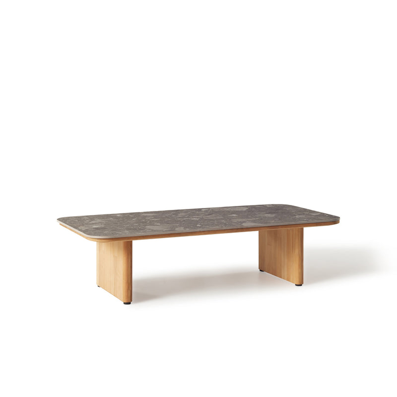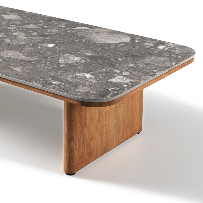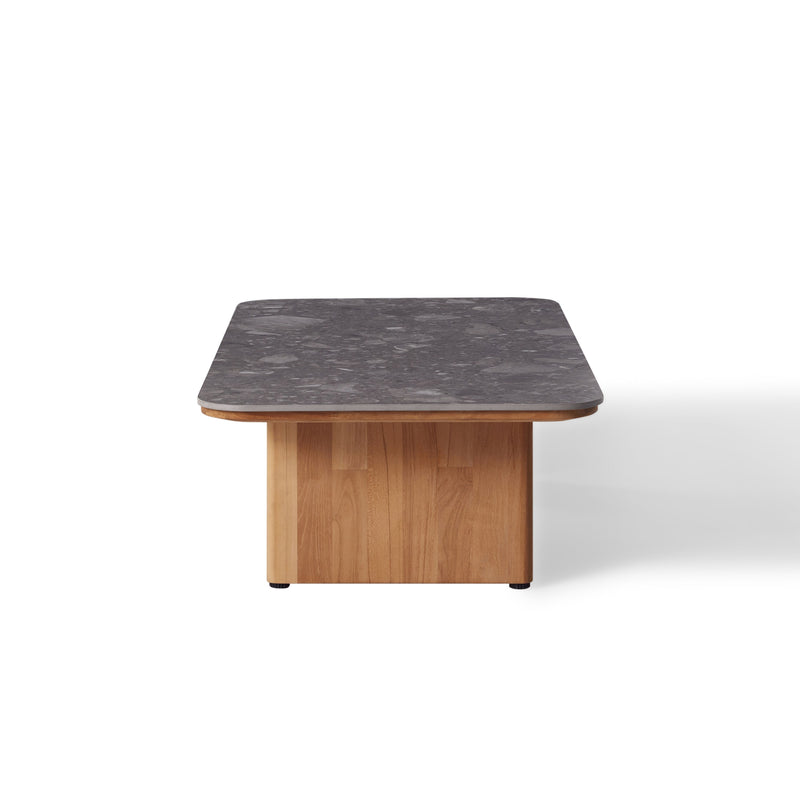 Retro curves meet fresh-cut angles. Warm materials meet airy designs. The Aptos Coffee Table nods to the past with rounded corners and a terrazzo top, while plank legs and Grade-A plantation grown teak give it trend-transcending timelessness.
