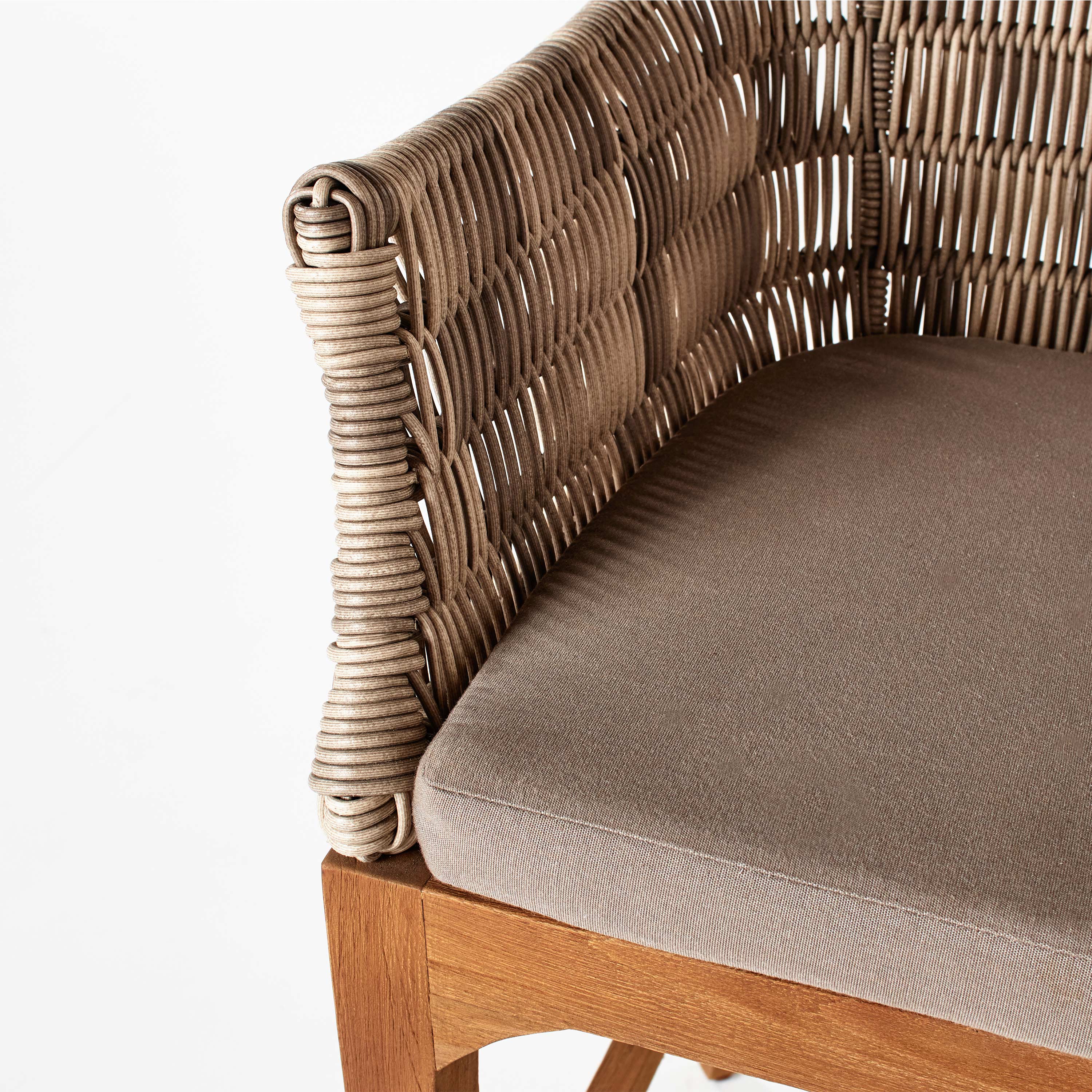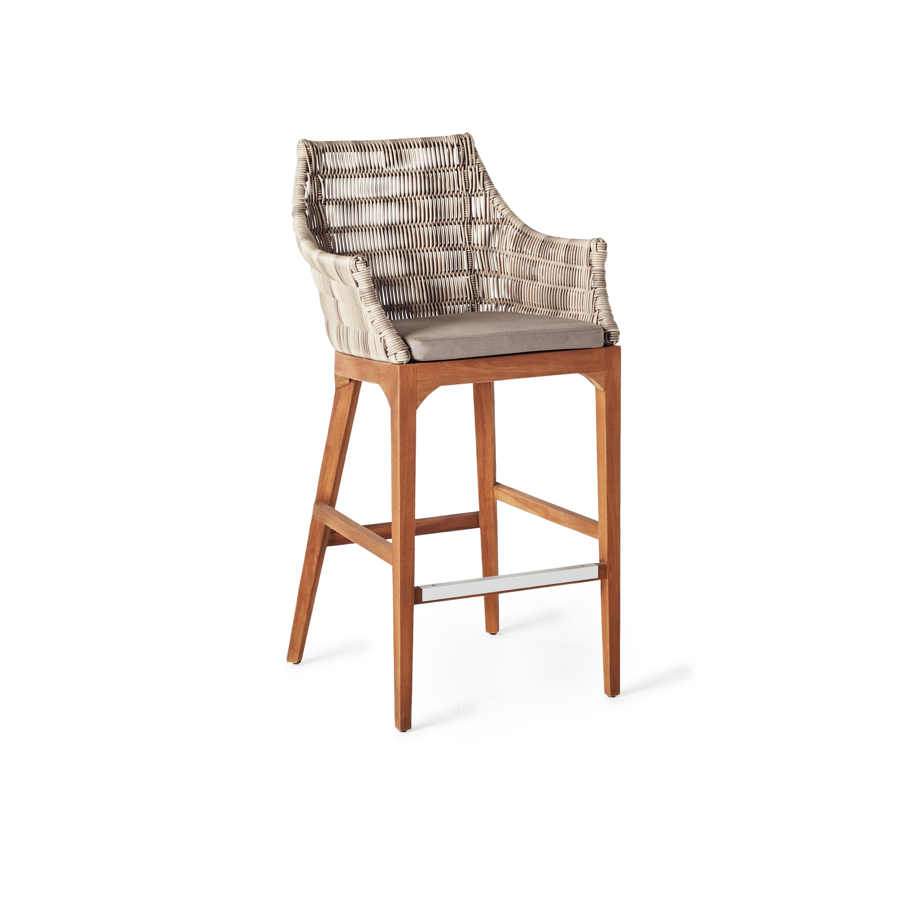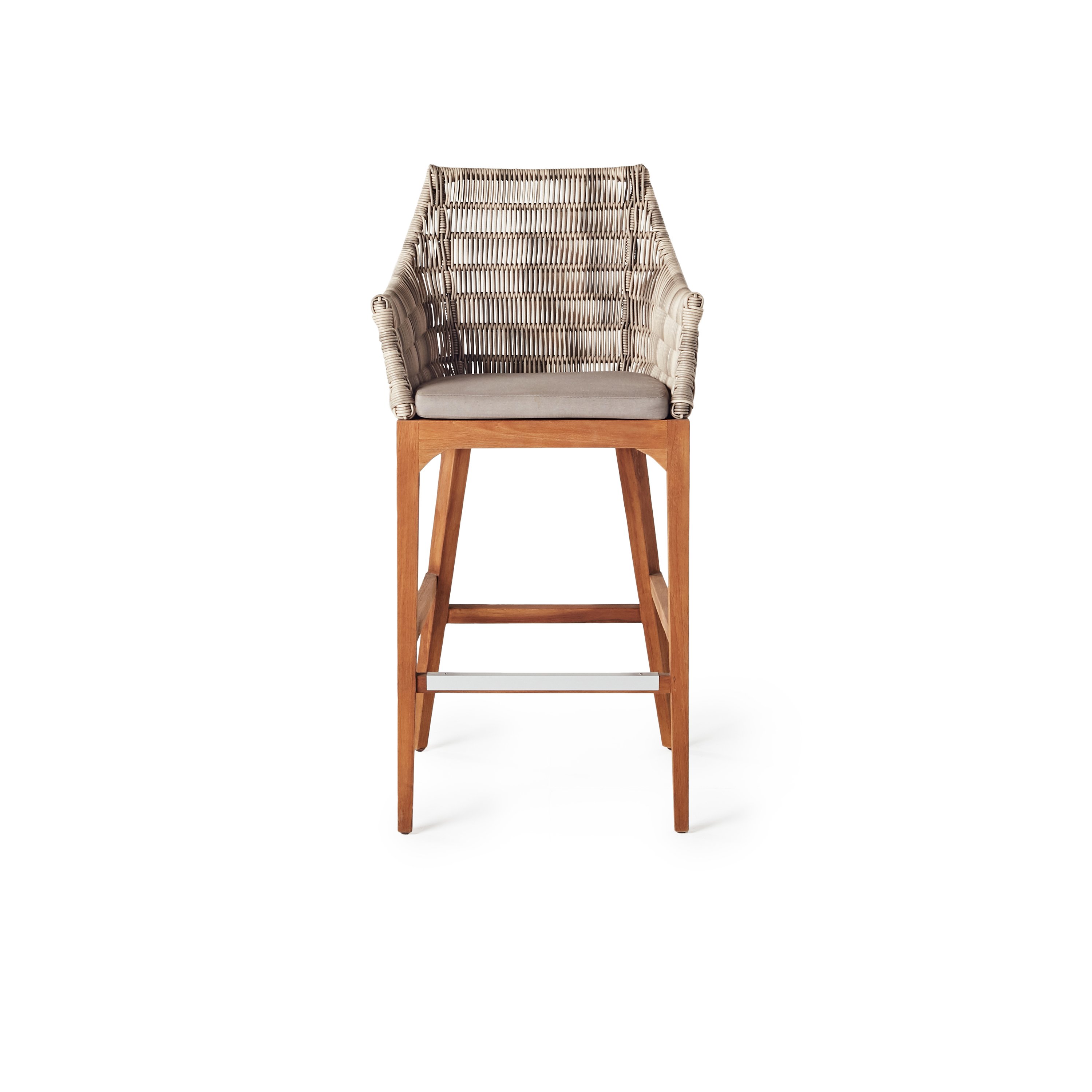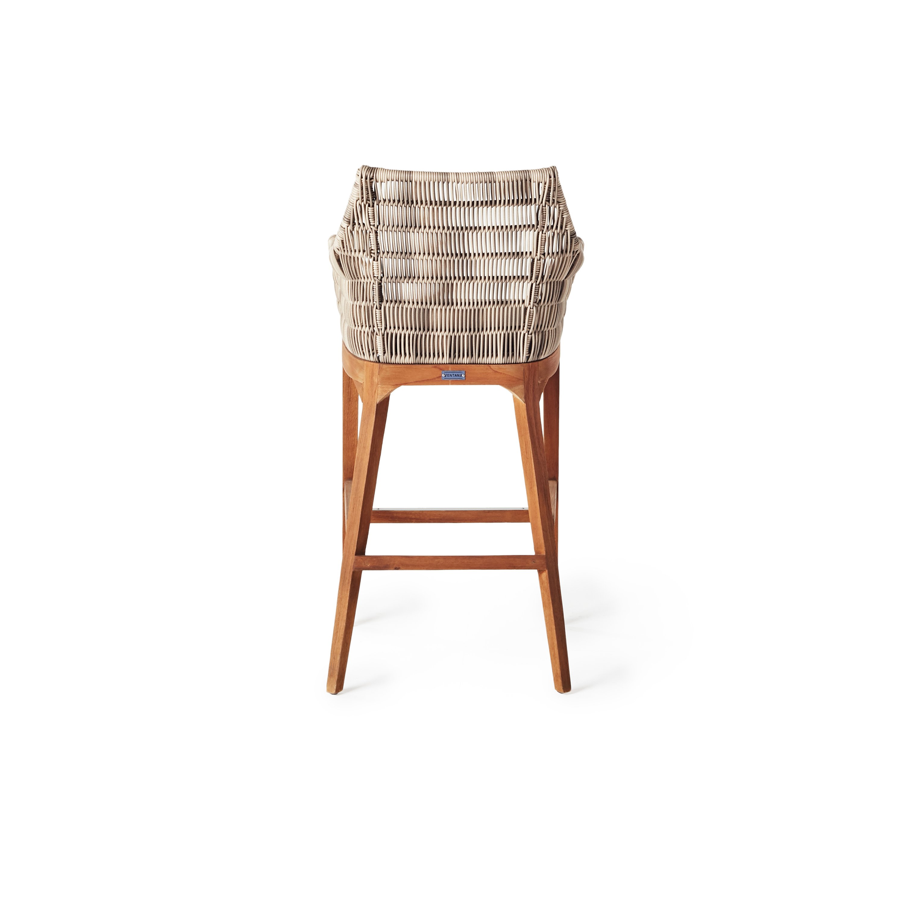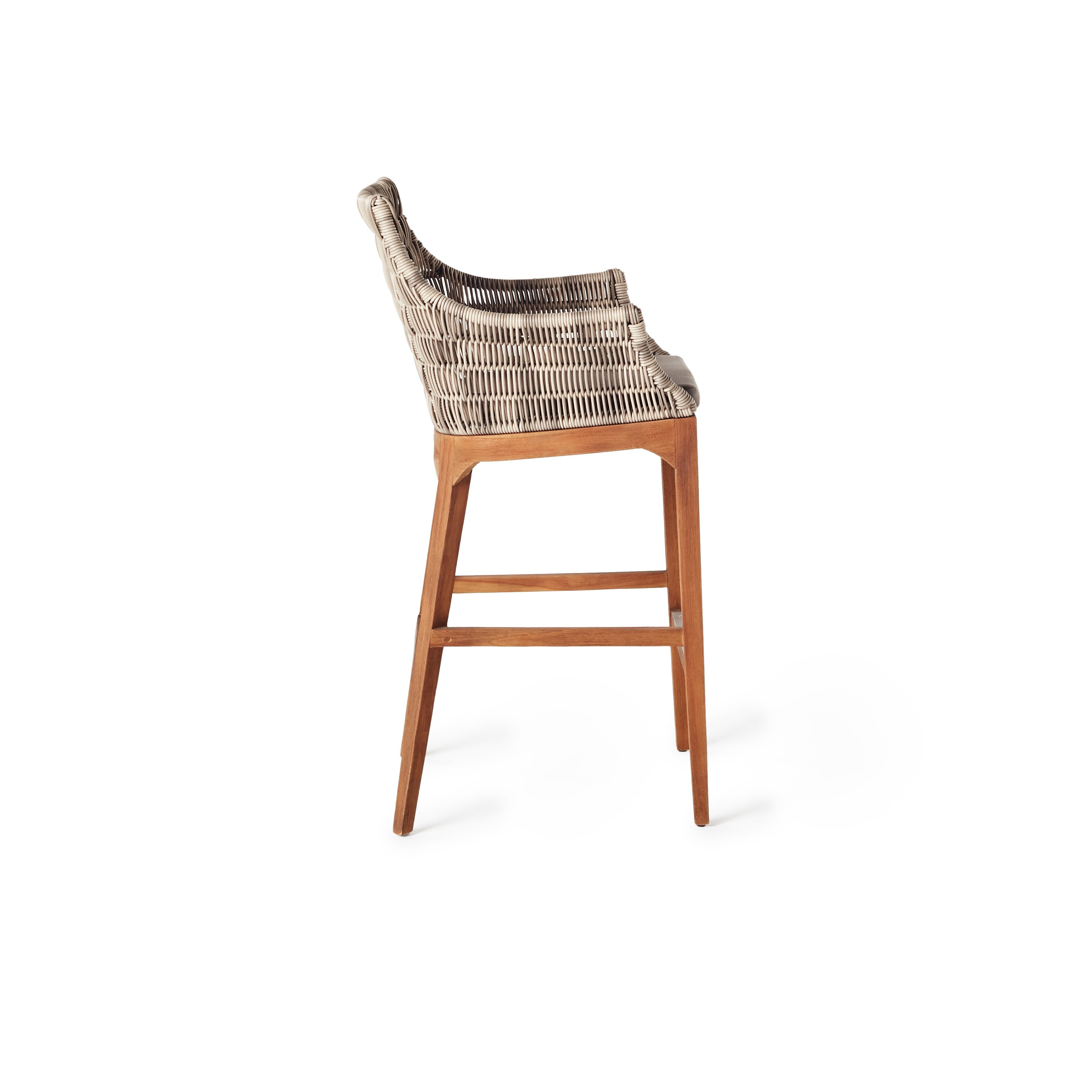 - Dining chair & bar chair are crafted of teak with all-weather wicker & aluminum backs