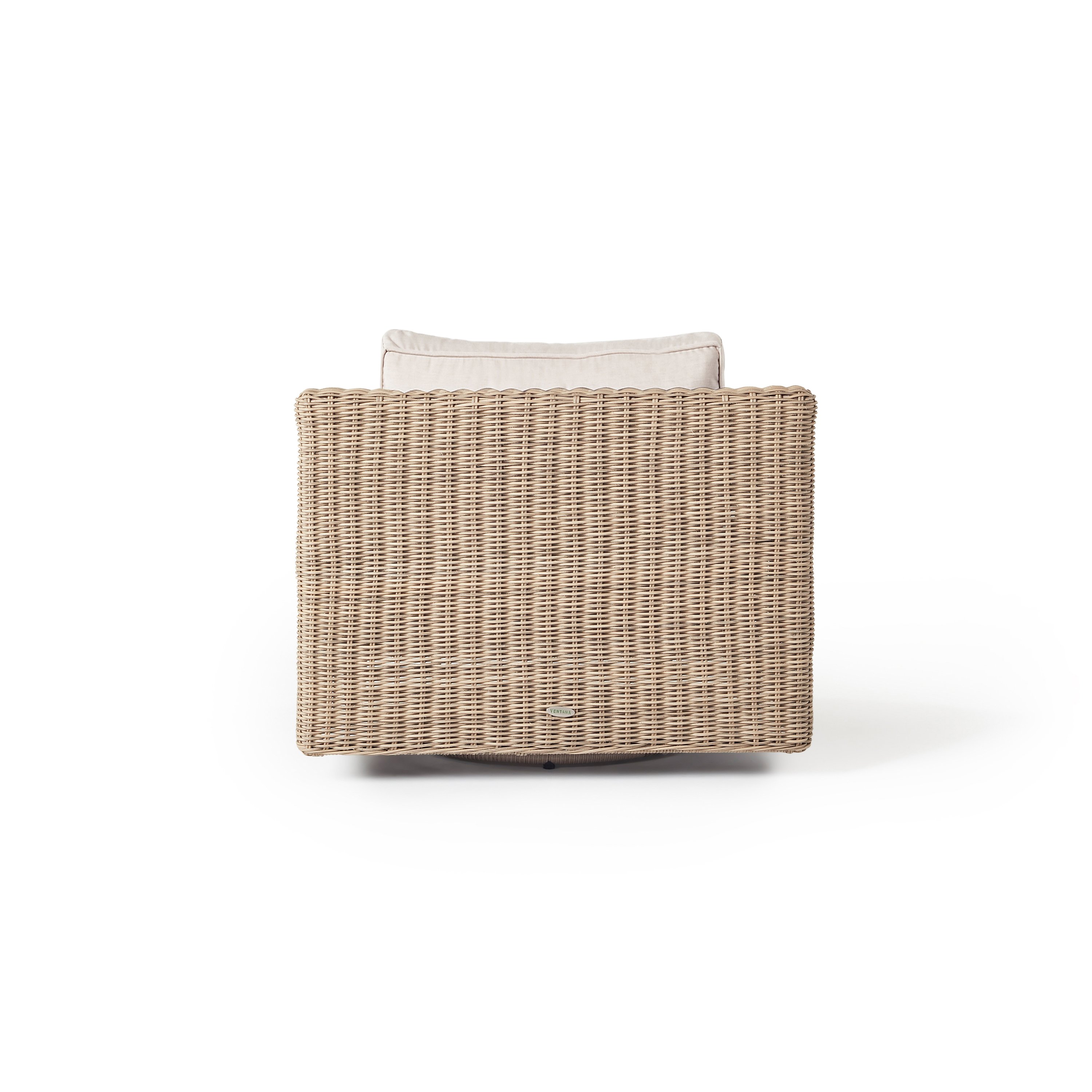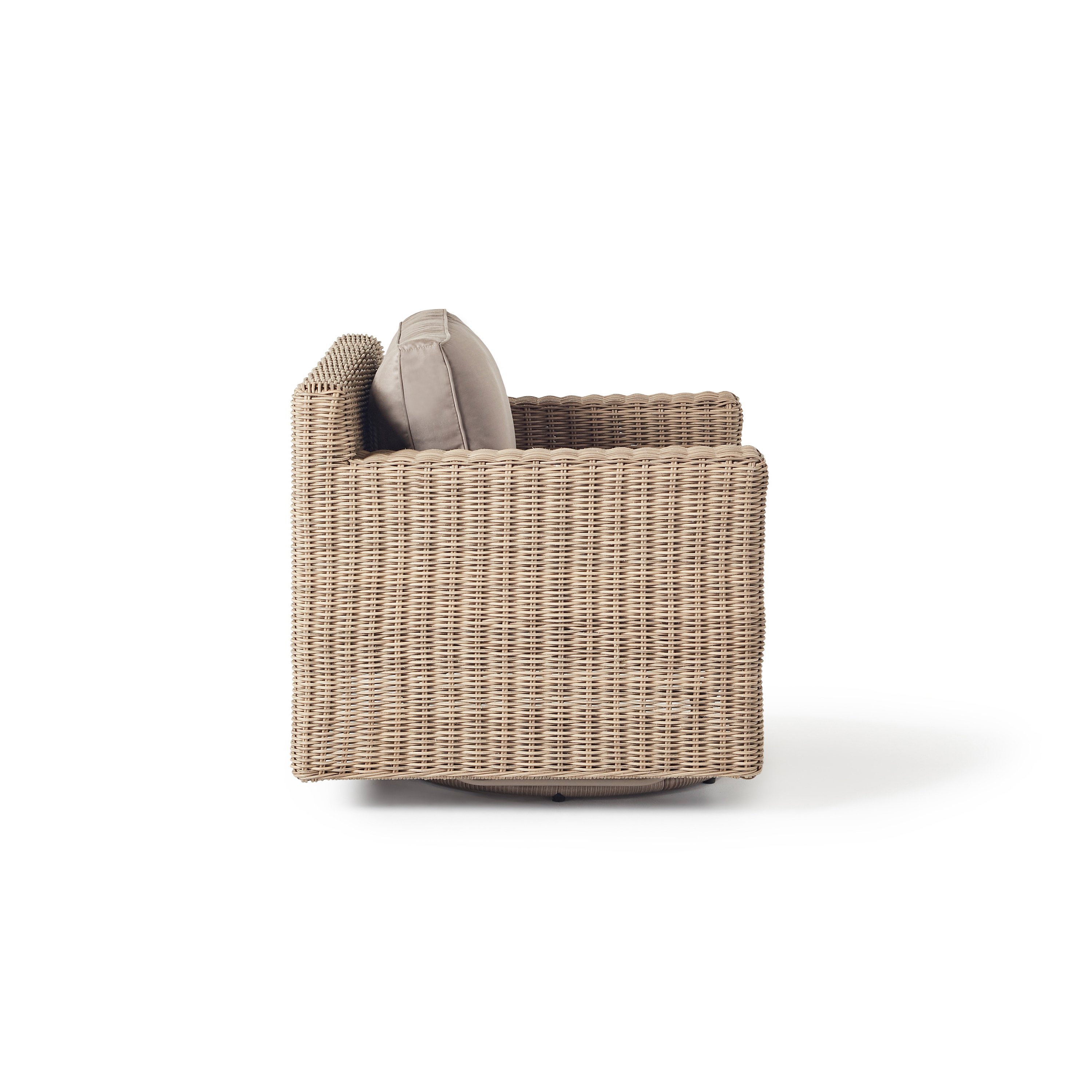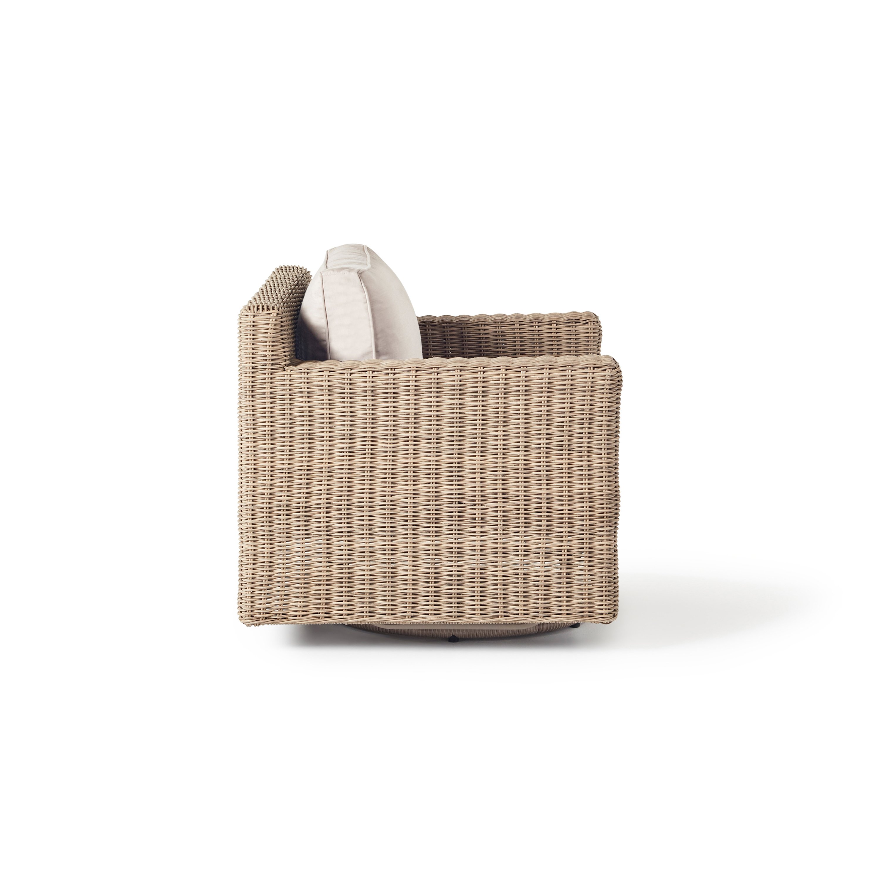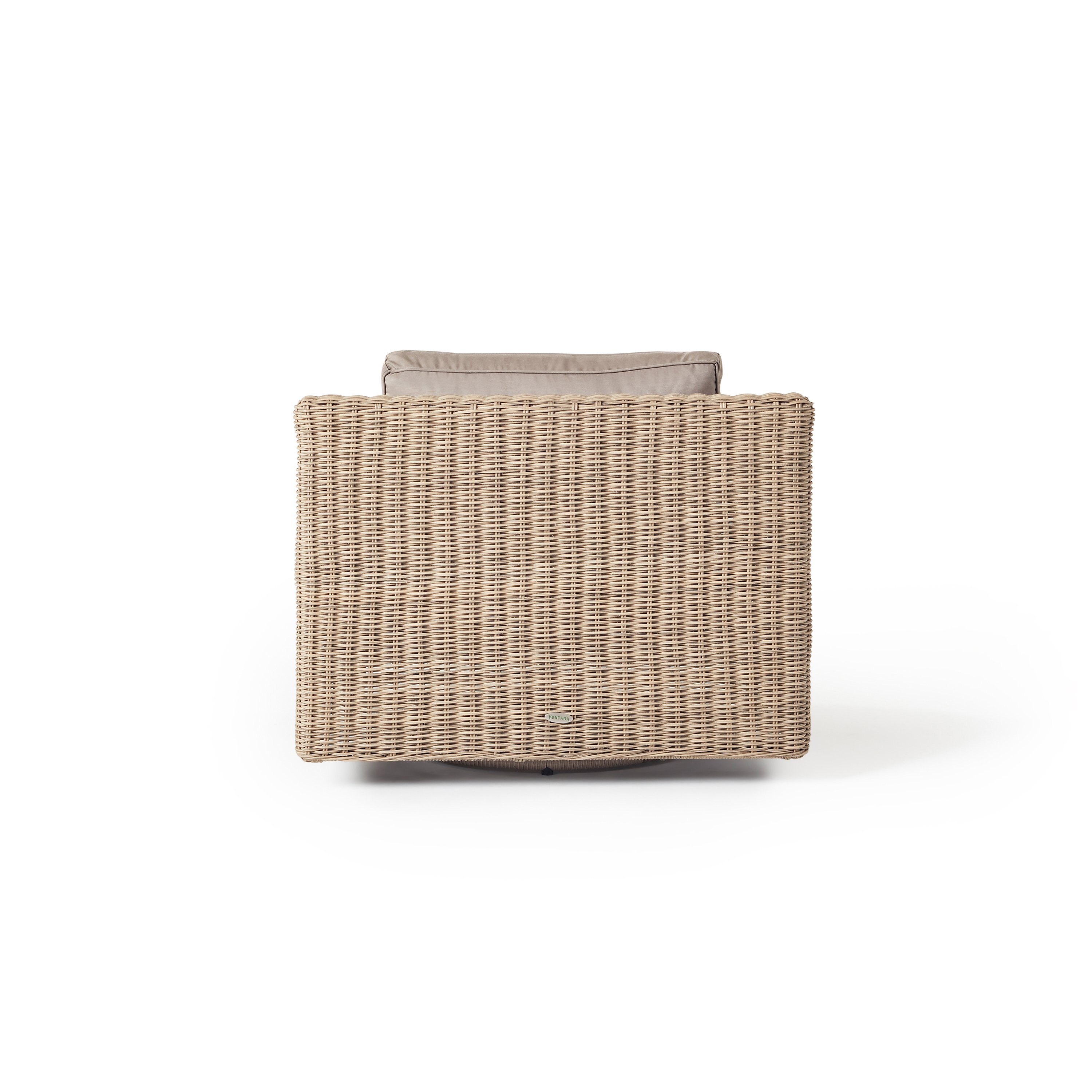 Wicker gets a modern makeover, with all the beauty and none of the maintenance. Woven of a durable, all-weather material with the organic texture and subtle shading of real rattan, Sausalito invites lounging with thick welted cushions that accentuate its crisp, linear silhouettes.