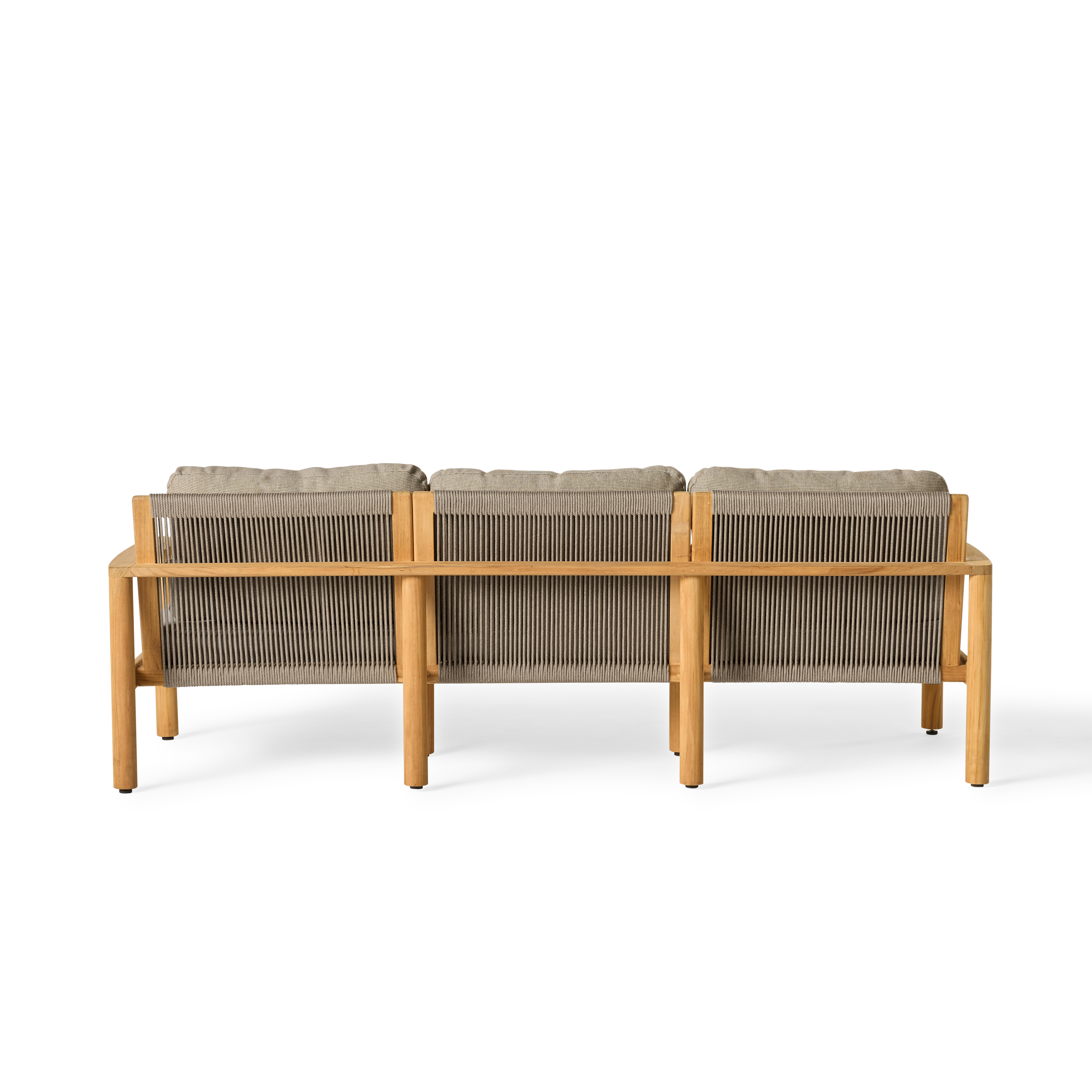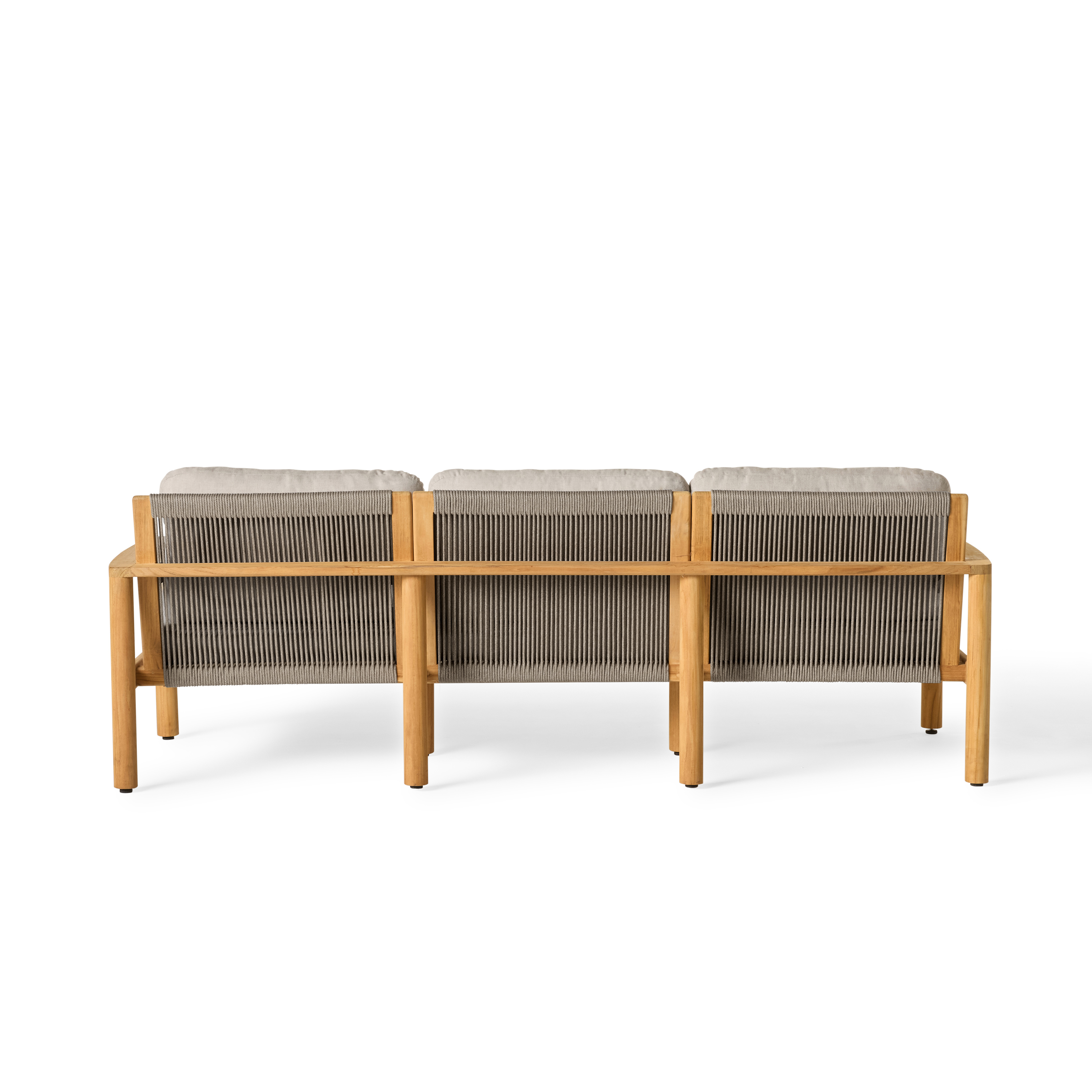 Strong yet simple vertical elements flow into gently curving horizontal features to give the Stinson Sofa sturdy structure with the wraparound feel of the curved beach for which it’s named. Premium natural teak and long-wearing Italian rope ensure durability and timeless good looks while the comfortable deep-seating style encourages everyone to relax a little longer.
